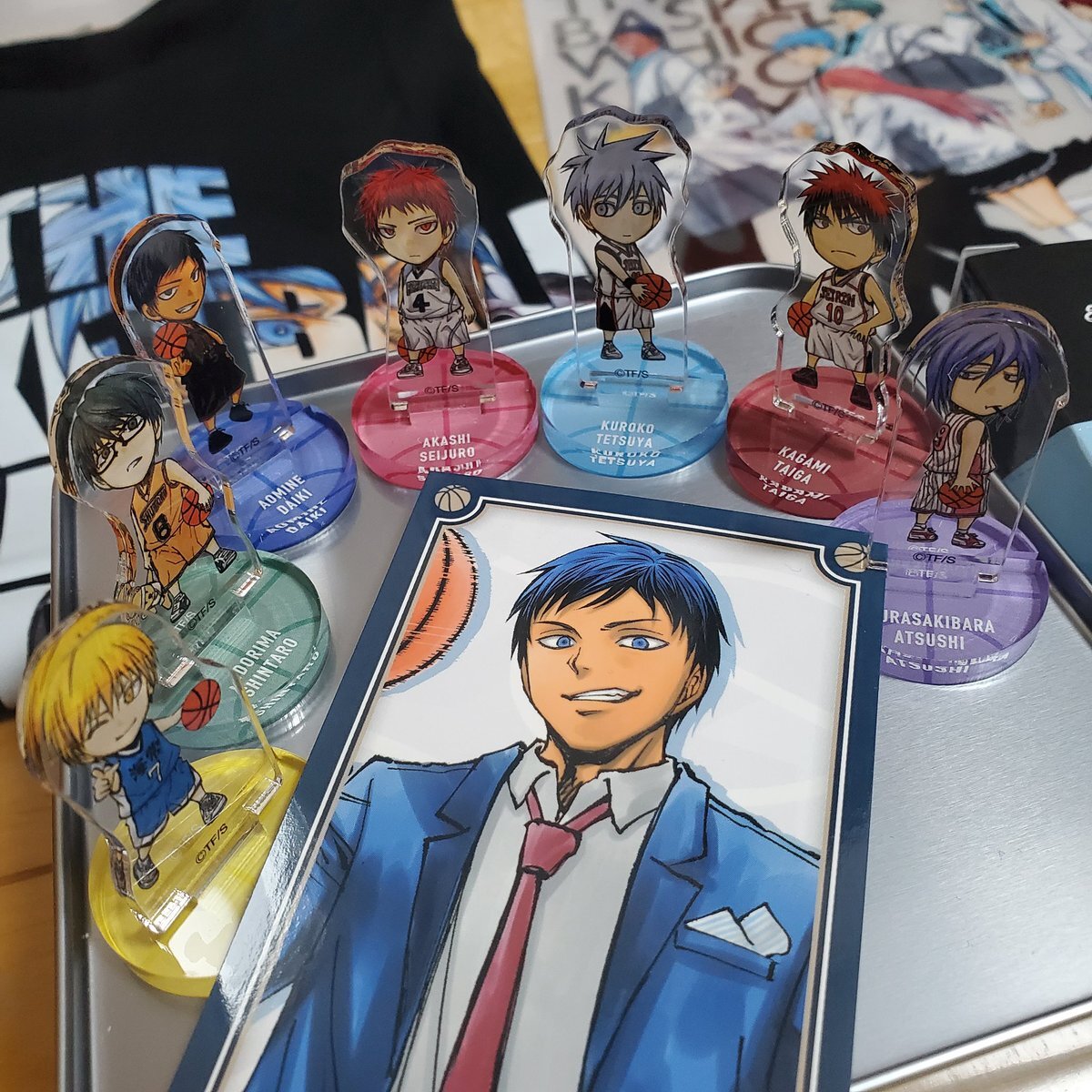 #黒バス展名古屋に行ってきました 昨日急遽行ってきました笑 チケットは紫原でした! アクリルブロック3種最高すぎる…! コマプレートも現物見たら良すぎて青峰と黄瀬の買ってしまった笑 緑間の缶バッジを紫原に交換してくださった方ありがとうございました!! pic.x.com/Lk0YyLnLxS