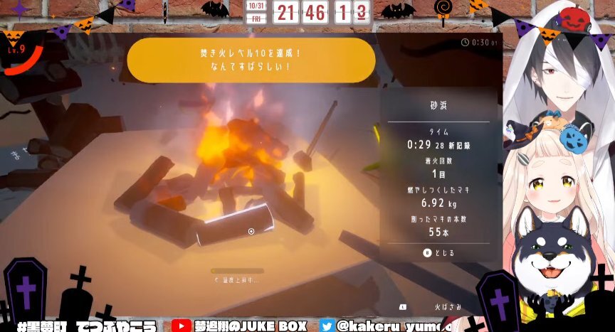 チルっと焚き火ソン #黒夢町 #夢追翔 #町田ちま #黒井しば 焚き火を育てるゲームです👏 火遊び大好き黒井しば 恥さらし大好き夢追翔 辛抱たまらん町田ちま …の3人がハロウィンの夜に贈る 楽しくもチルい配信😮 薪に水をかけてしょんぼりする かわいい町田も見られます🙂youtube.com/live/QOsc4N49A…