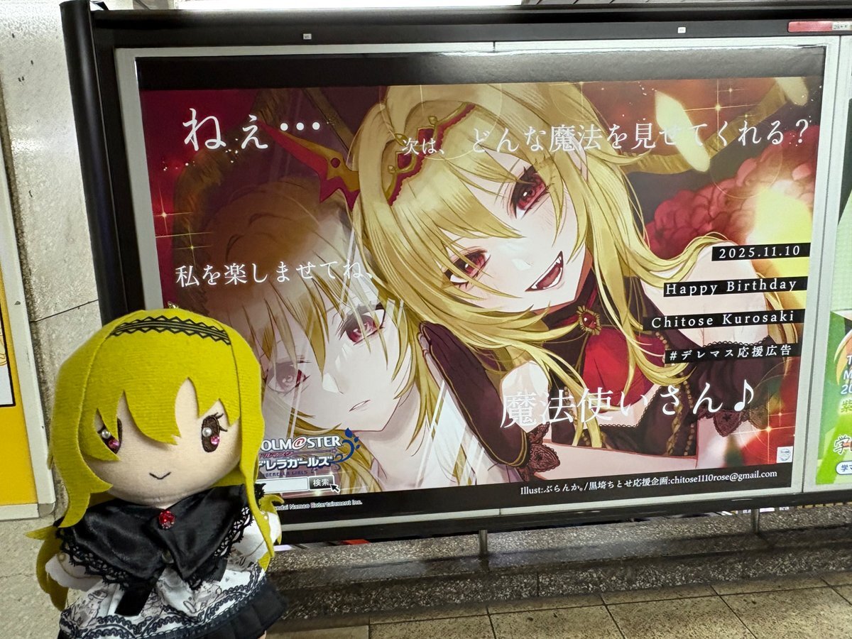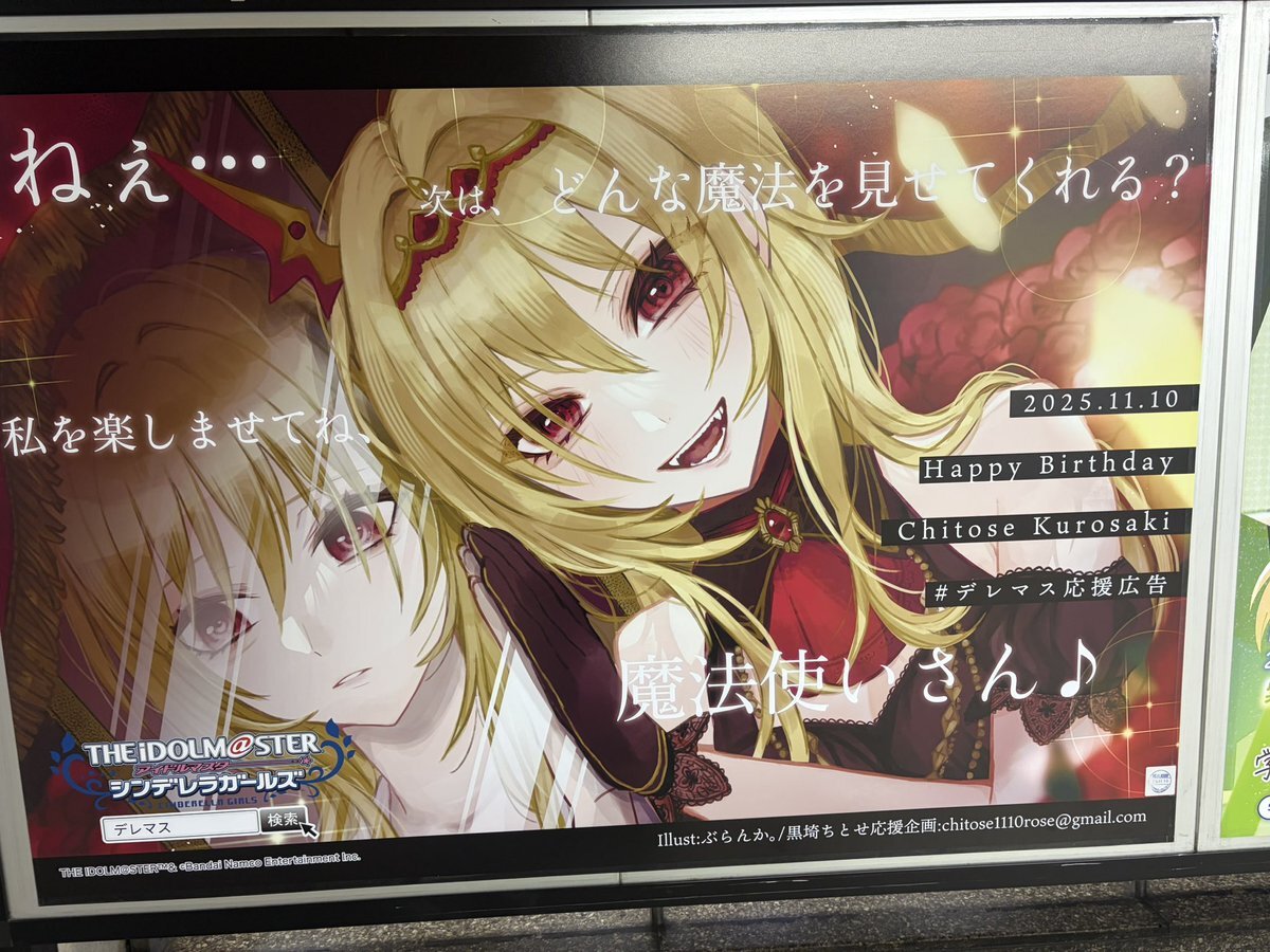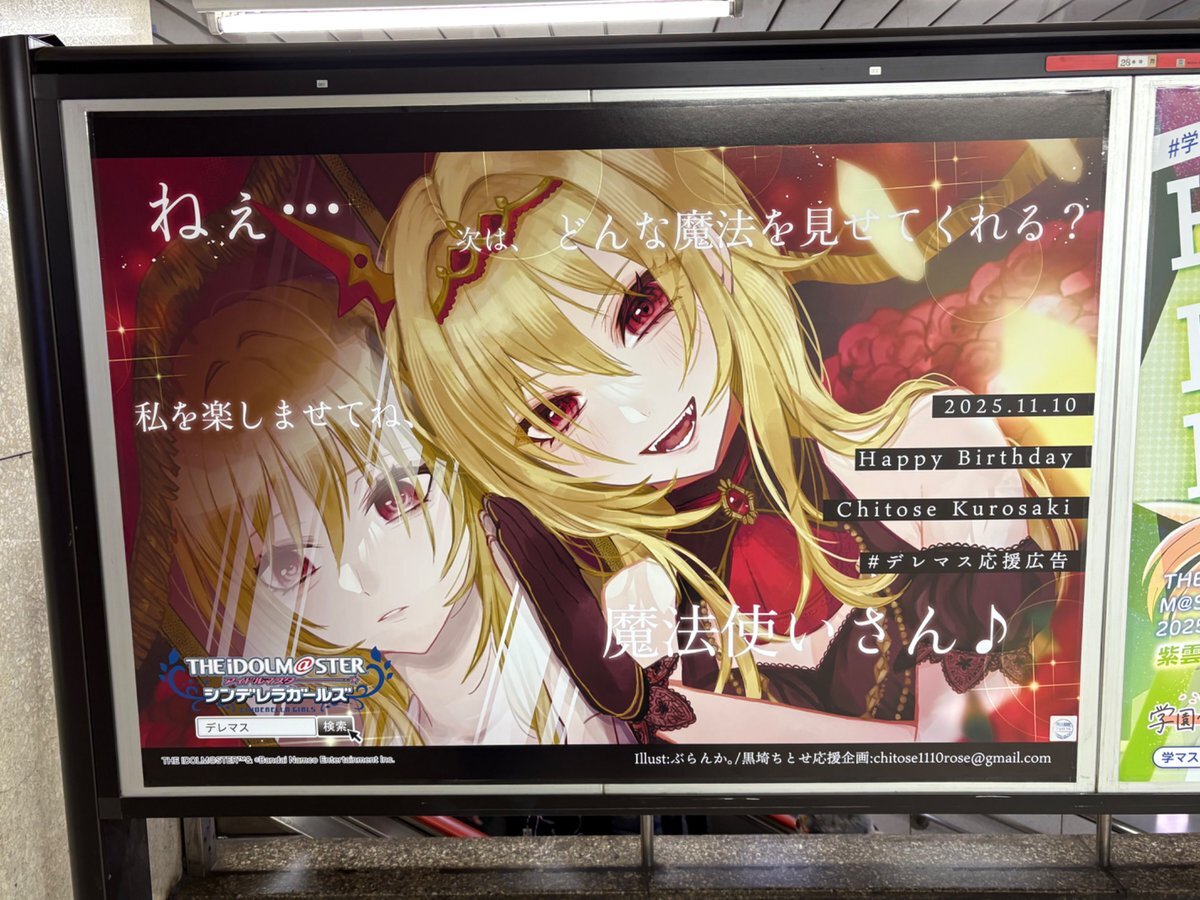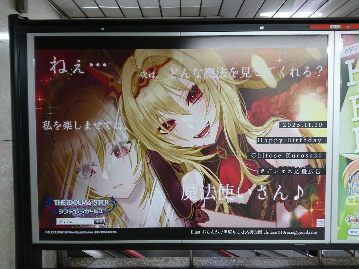 新宿駅にて黒埼ちとせお嬢さまの誕生日応援広告を見てきました! 大変お綺麗…ありがとうございます🙏 #黒埼ちとせ生誕祭2025 #黒埼ちとせ誕生祭2025 #デレマス応援広告 pic.x.com/ikPypUwBcM