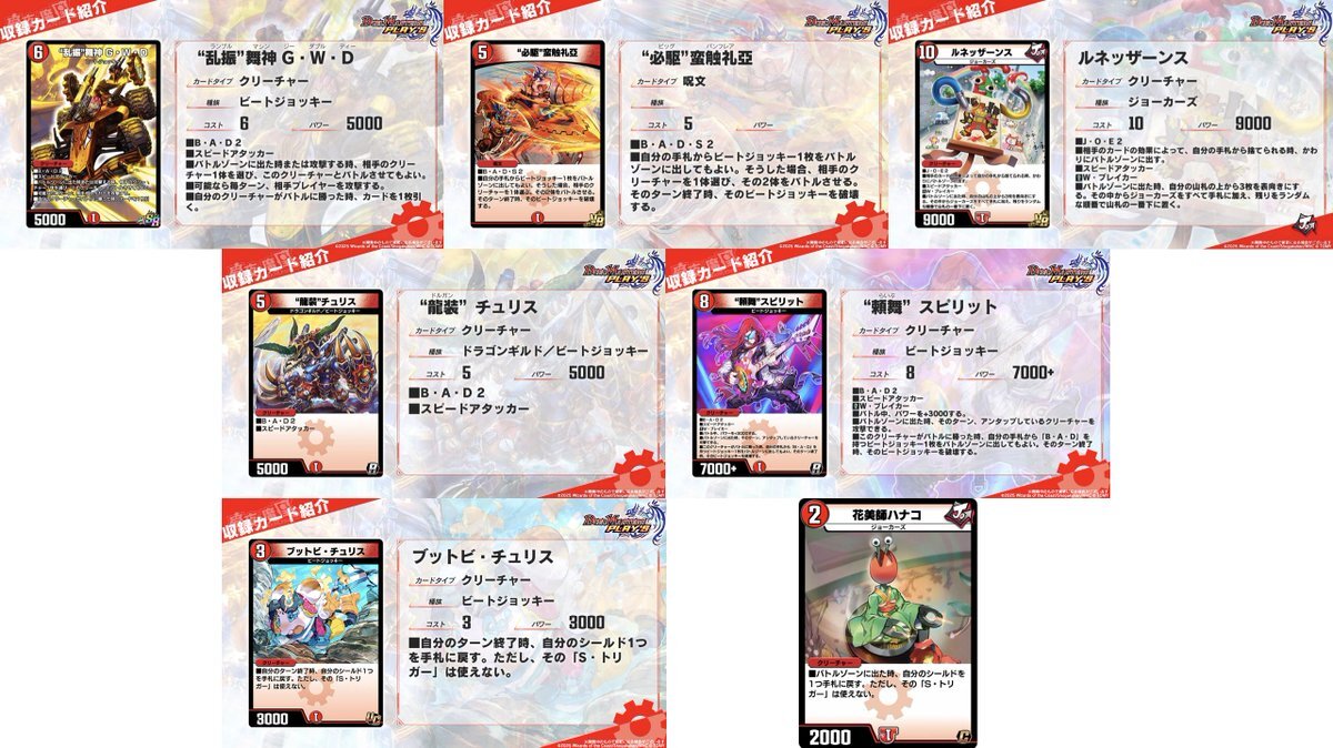 【11/19 第33弾新カード情報まとめ】 本日は《“乱振”舞神 G・W・D》など、ビートジョッキー関連の新カードが公開! #デュエプレ #黒夜の魔凰 ▼新カード情報まとめ kamigame.jp/%E3%83%87%E3%8… pic.x.com/hvxZUqDFC8