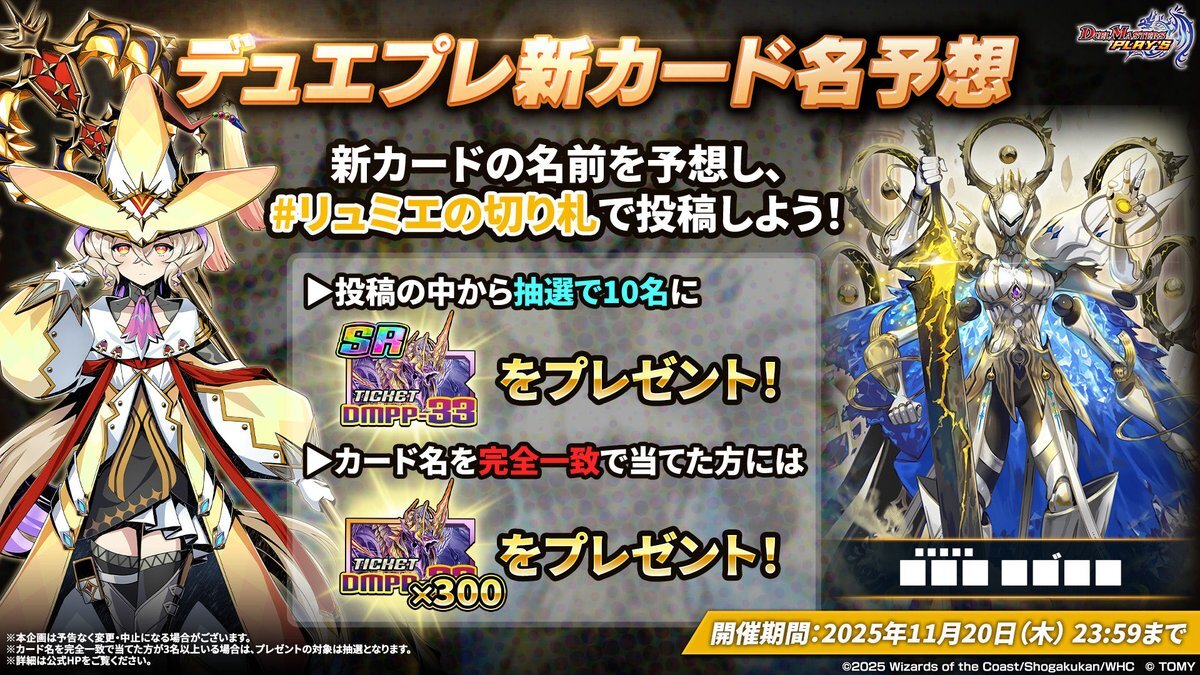 リュミエの切り札の名前予想企画の投稿期限は今日の夜23:59まで‼️ 私の考察をnoteへまとめてます 【#デュエプレ】⚠️回答は1人あたり4回まで!!!⚠️【リュミエの切り札】|そすんさー@坂本黒猫 @sinteimuura #黒夜の魔凰 note.com/sosunser/n/n49…