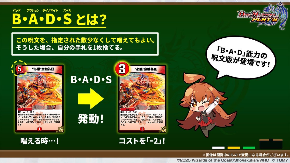 【新能力情報】 『B・A・D・S』 「B・A・D」能力の呪文版が登場! #デュエプレ #黒夜の魔凰 pic.x.com/w8gFfq8lU9