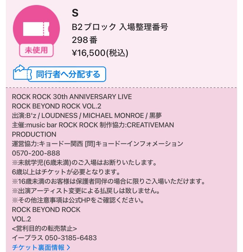 出張で行けなくなってしまい、お譲り先を探しています ROCKROCK 30th ANNIVERSARY LIVE ROCK BEYOND ROCK VOL.2 【譲】 11/24(月・祝) VIP 定価+eプラス手数料 2枚 分配でのお取引となりますのでe+アプリ必要です #ROCKROCK30th #ROCKBEYONDROCK #Bz #LOUDNESS #MICHAELMONROE #黒夢