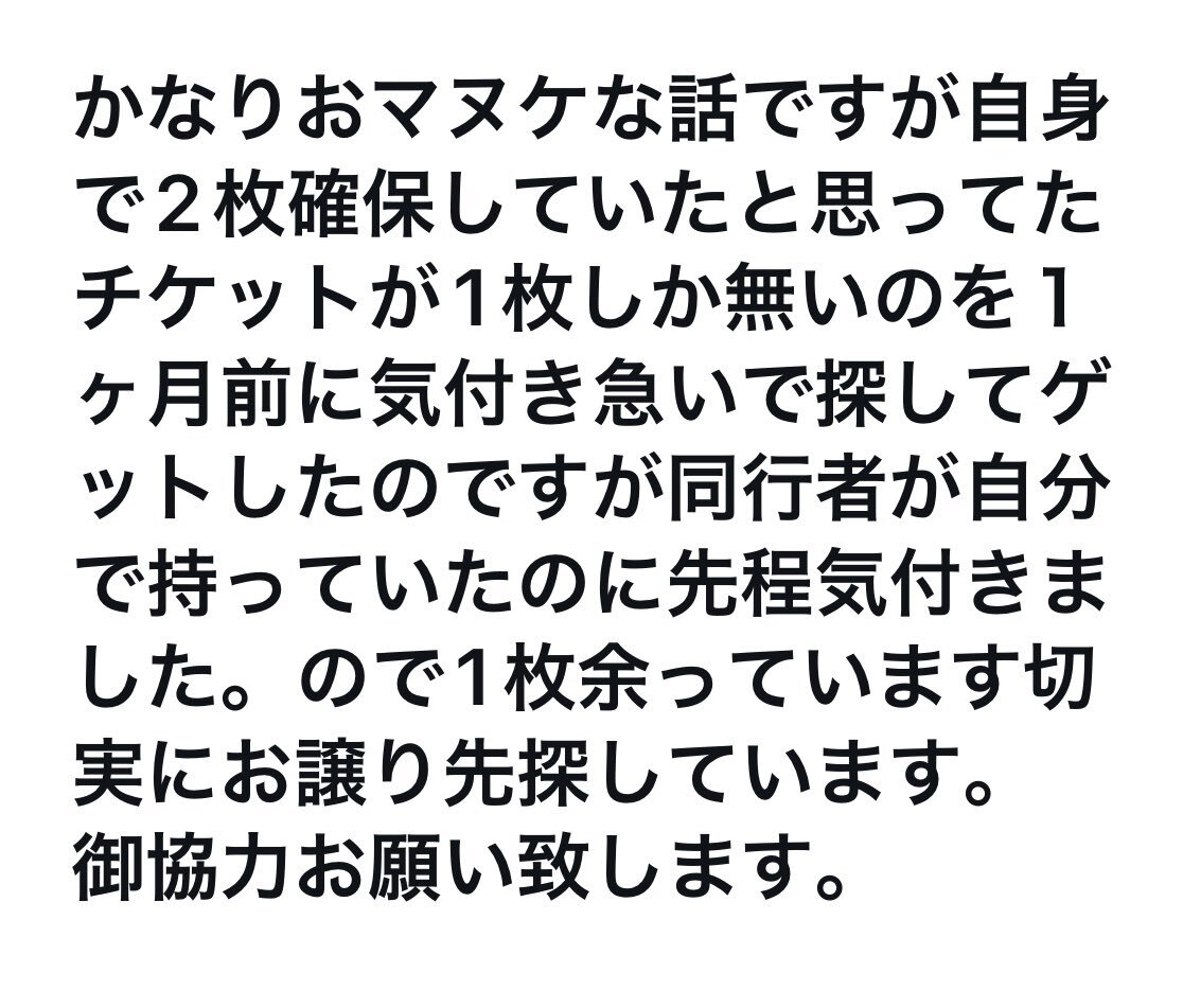 【拡散希望】 画像読んで下さい チケット譲ります 尽未来祭 11/22〜11/24 3日通し券 スタンディング or サイド指定席どちらか 急遽1枚余りました スマチケにて分配お譲りします PayPayにて手数料無し定価のみでお譲りします ※番号等詳細はDMにてお伝えしますフォローお願いします #BRAHMAN #LUNASEA