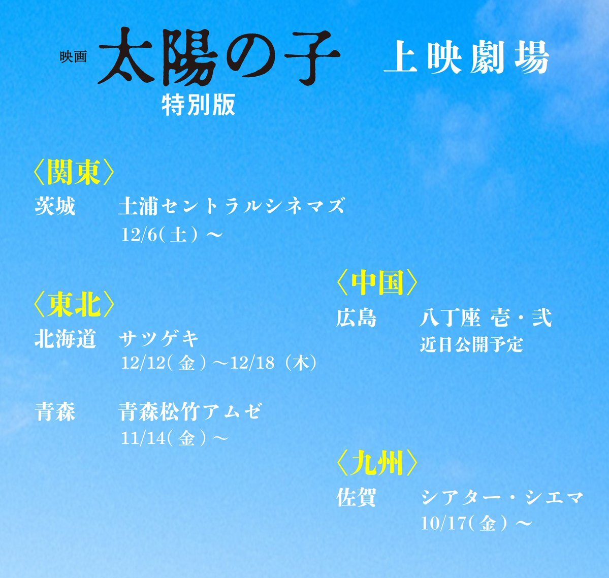 #いい推しの日 #三浦春馬さん推し 「#天外者」「#森の学校」をずっと上映中の #土浦セントラルシネマズ様推し 🗓️11/8〜11/28 #なるせゆうせい監督 「#WHO?」 上映 🗓️11/29、30 #天外者 #田中光敏 監督 #たのうえこうきち さん 舞台挨拶🎙️ 🗓️🎤12/6〜1/16で調整中 #太陽の子 #黒崎博監督 舞台挨拶🎙️ x.com/CinemaTRE/stat…