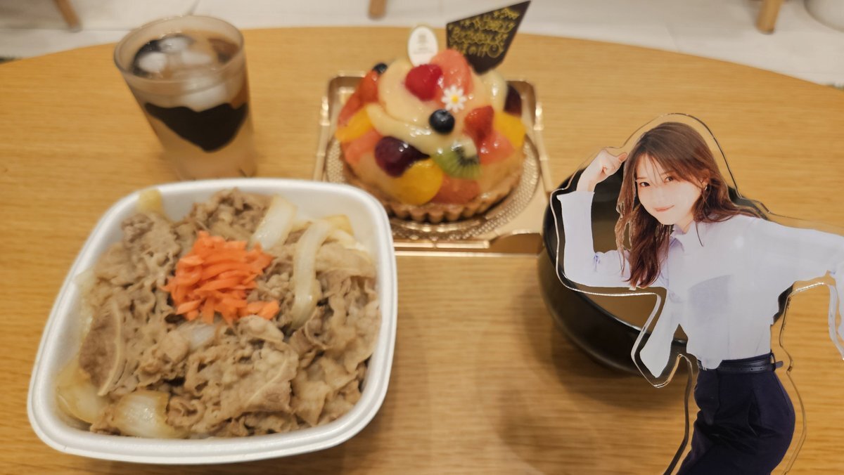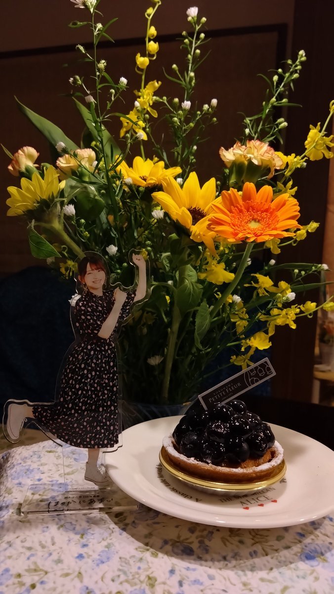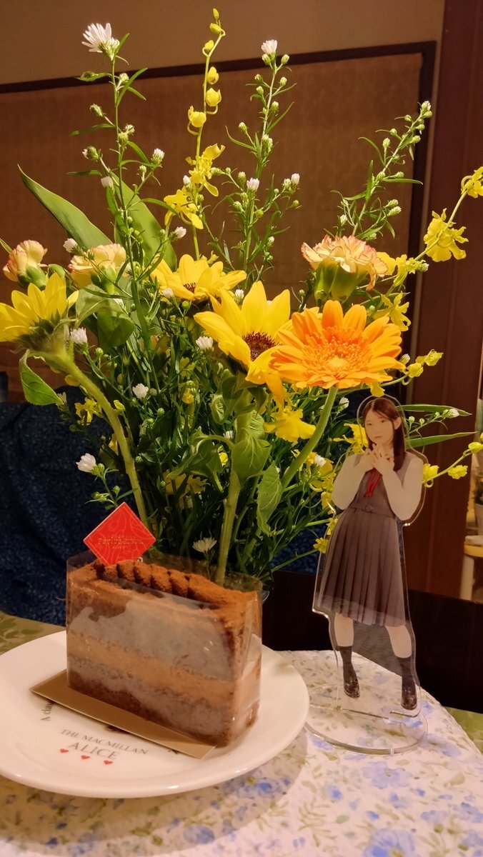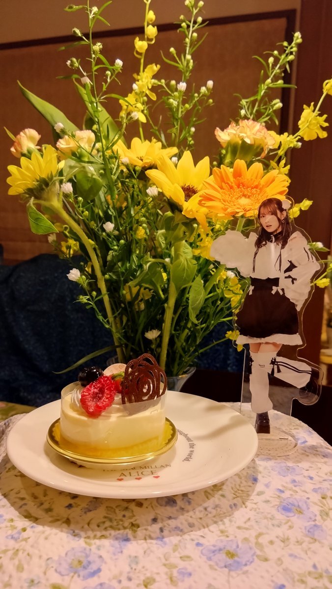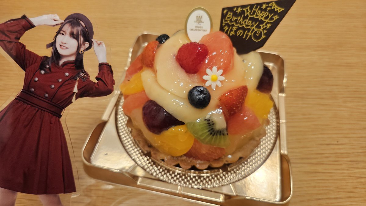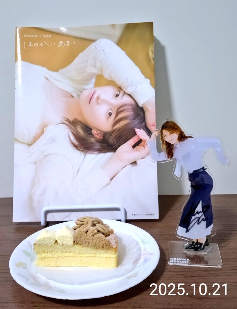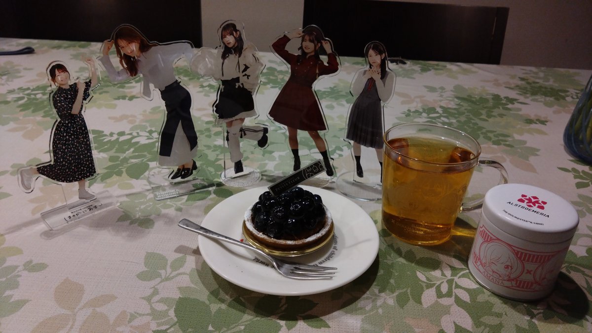 アクスタに囲まれてケーキ さすがに、妙香園のコラボフレーバーティーの飲みどころだろ これ甘い香りとこうばしさがあってとても良いです #黒木ほの香誕生祭2025 pic.x.com/0wFVVP8NEs