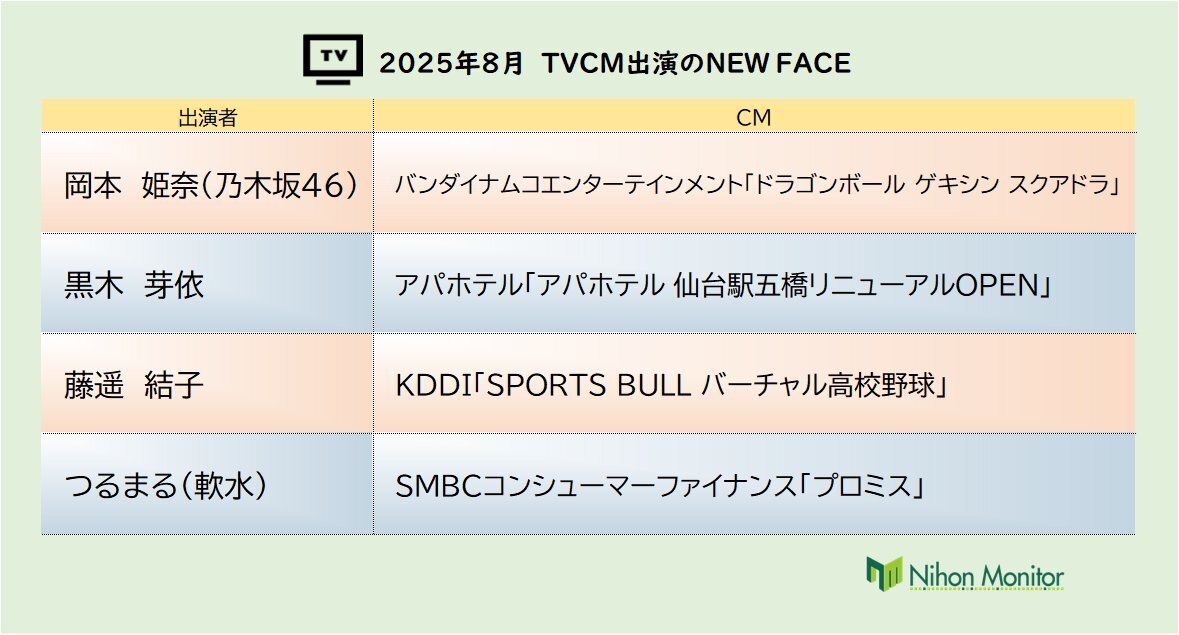 📺TVCM ✨2025年8月のNEW FACEをPICK UP✨ 岡本姫奈さんが念願のドラゴンボール仕事で単独CM初出演🩰🐉 #岡本姫奈(#乃木坂46) バンダイナムコエンターテインメント / ドラゴンボール ゲキシン スクアドラ #黒木芽依 アパホテル / アパホテル 仙台駅五橋リニューアルOPEN #藤遥結子 KDDI / SPORTS pic.x.com/ag9yrPNDfs