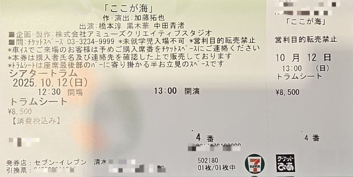 本日はシアタートラムへ。「ここが海」観てきました。 座席表ちゃんと見てなかったら最前列でした😳 どっぷり浸かりすぎて、ラストは涙ポロポロでございました🥲 加藤拓也さんと橋本あっちゃんのタッグ、3本目の観劇です。たまらん中毒性がありますなぁ。 #ここが海 #橋本淳 #黒木華 pic.x.com/r9zlqwtDcG