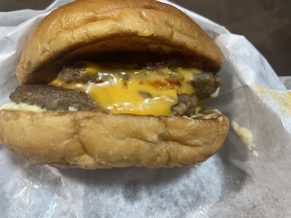 黒毛和牛のダブルチーズバーガー、 超期待して食べてみたけど、なんだろ、しょっぱすぎる、、、。塩気が濃過ぎてお肉の味が入ってこない。お肉にこだわったのなら、もう少しお肉そのものの美味しさを味わえる味付けにしてほしいなぁ、、、 #黒毛和牛のダブルチーズバーガー