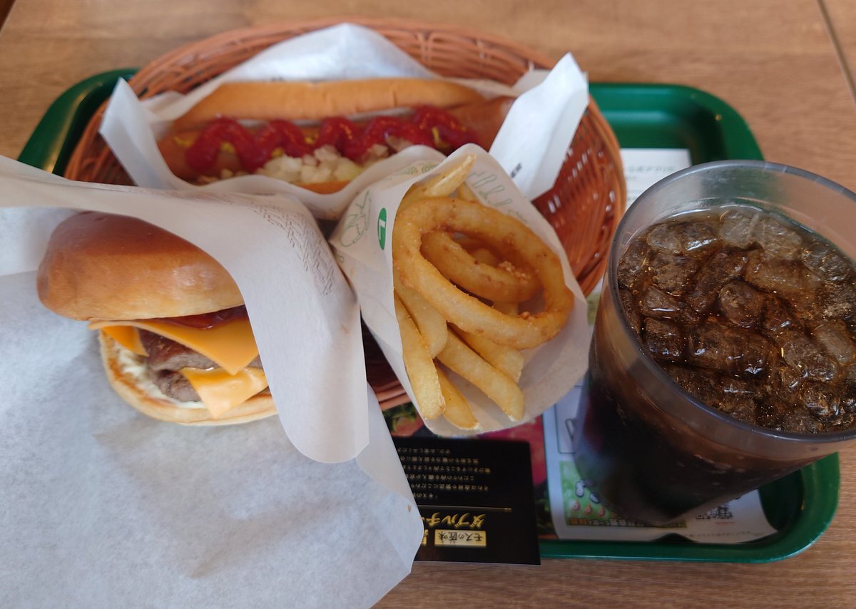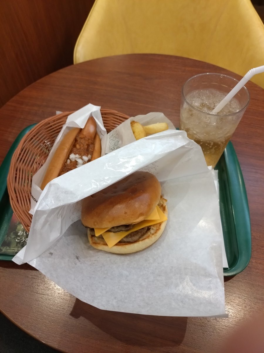 黒毛和牛のダブルチーズバーガー🍔 ホットドッグ🌭 #モスバーガー #MOSBURGER #黒毛和牛のダブルチーズバーガー #ホットドッグ #オニポテ #オニポテセット pic.x.com/SEZySeaAzO
