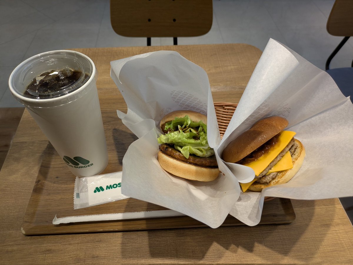 ランチはモスバーガー🍔 昼割セットで「テリヤキバーガー」&せっかくなので「黒毛和牛のダブルチーズバーガー」をチョイス! やっぱり美味しかった😊 #モスバーガー #黒毛和牛のダブルチーズバーガー #テリヤキバーガー pic.x.com/hb2Z7UBcMO
