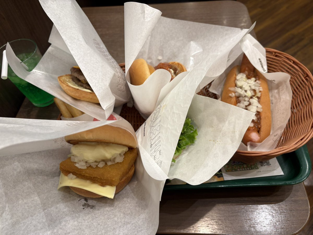 今年の誕生日飯はモスにしました!! やっぱモスうめぇ!!! #モスバーガー #黒毛和牛のダブルチーズバーガー #モスバーガー #フィッシュバーガー #ライスバーガー焼肉 #チリドッグ pic.x.com/BYC2pwBLuE