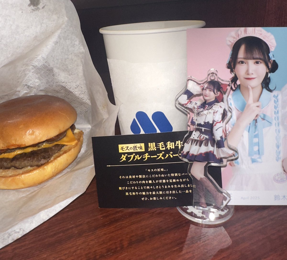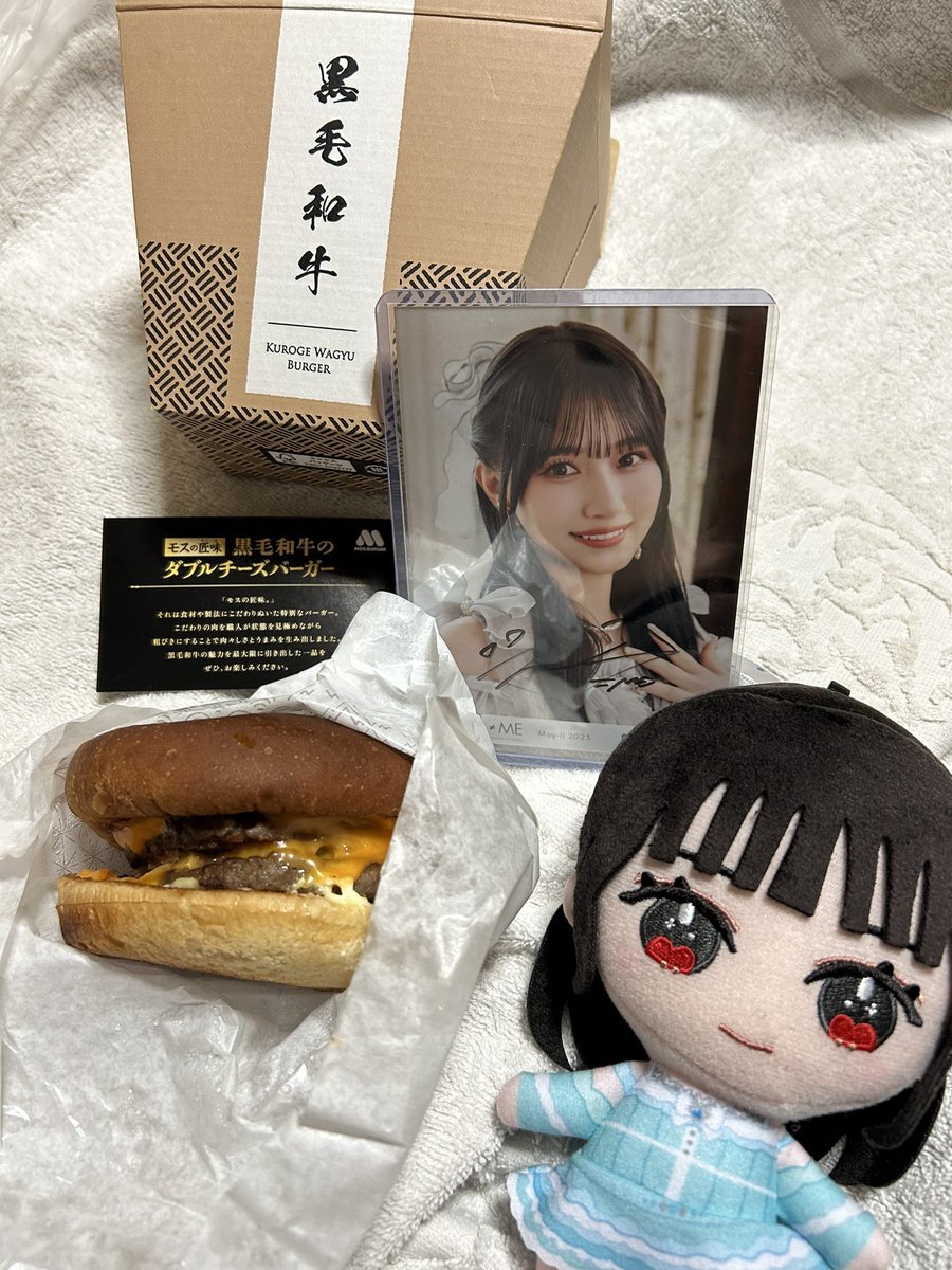 返信先:@mos_burger#鈴木瞳美/ちゃんのアクスタ希望です❣️ 美味しすぎて朝も昼も黒毛和牛のダブルチーズバーガーをいただきました.ᐟ.ᐟ♡ ふわふわのバンズとパティのジューシーさ、そしてオニオンとトマトの甘みが感じられるソースがたまらんです #ノイミーの今夜はもぐもぐ肉モス #黒毛和牛のダブルチーズバーガー pic.x.com/NXCSGOdm2z