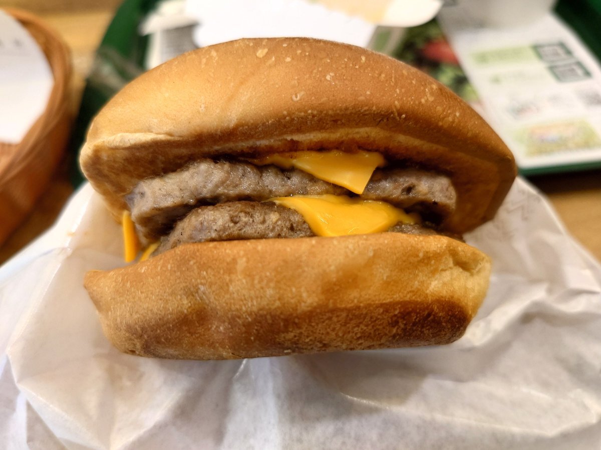 会社帰りにモスバーガーに寄って、期間限定の黒毛和牛のダブルチーズバーガーを食べて来た。 正直かなりうまい。こないだのメンツカツバーガーの時と違ってちゃんとチーズの意味があったし。これはリピ確定かな? #モスバーガー #黒毛和牛のダブルチーズバーガー pic.x.com/76aednKBuo