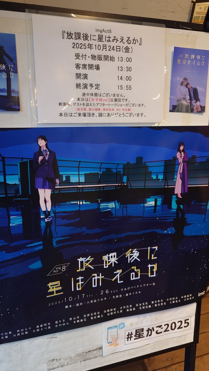 放課後に星はみえるか(女子校ver)観劇してきました 2月に朗読劇を観た時は自分の想像力で補完する事が多かったけど今回は大道具、小道具がしっかりあって細かいところまで解像度高く見られて良かったです (どこまで言っていいかわからないので この辺で笑) #星かご2025 #黒澤美澪奈 pic.x.com/xeNzrFlfDT
