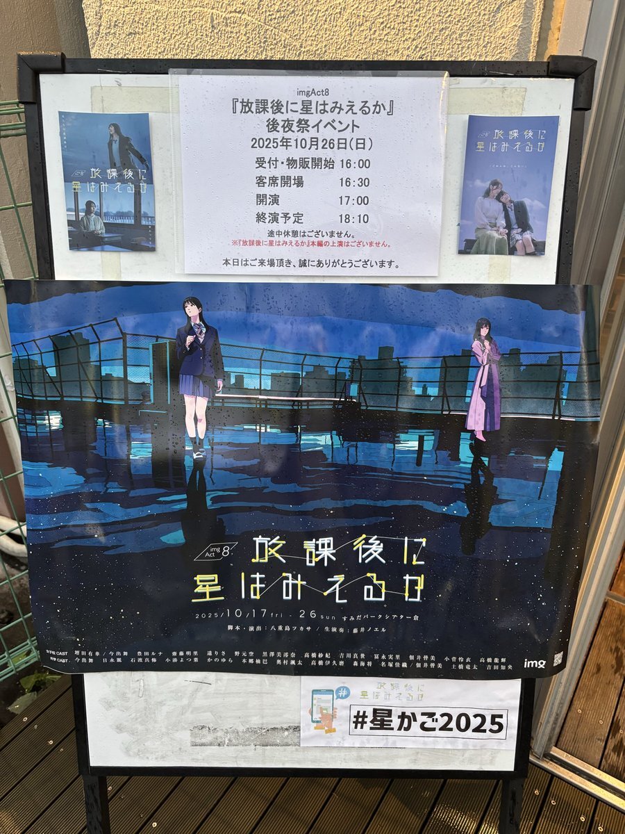 本日は、「放課後に星はみえるか」を観劇に、すみだパークシアター倉へ。有給休暇をもぎ取りましたわ。#黒澤美澪奈 さんの舞台はやはり生で観たい……#佃井皆美 さんのお芝居も生で初めて拝見。やはりライブは良いなぁ……無理した甲斐があった……🤩 #星かご pic.x.com/dMSEPH5cYH