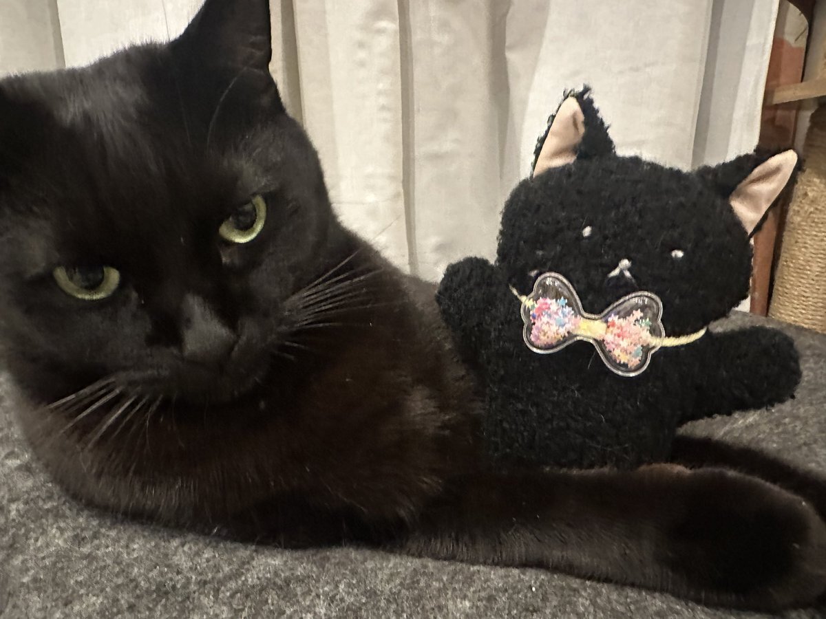 ちょっと分かりにくいですが、色違いでなっちゃんそーちゃんぬいをお迎えしてます+後半はご飯つけまくりのなっちゃんとまったりそーちゃん🥰へっへっへっ #黒猫の日 #イタリア黒猫の日 pic.x.com/LJhHxrfpur