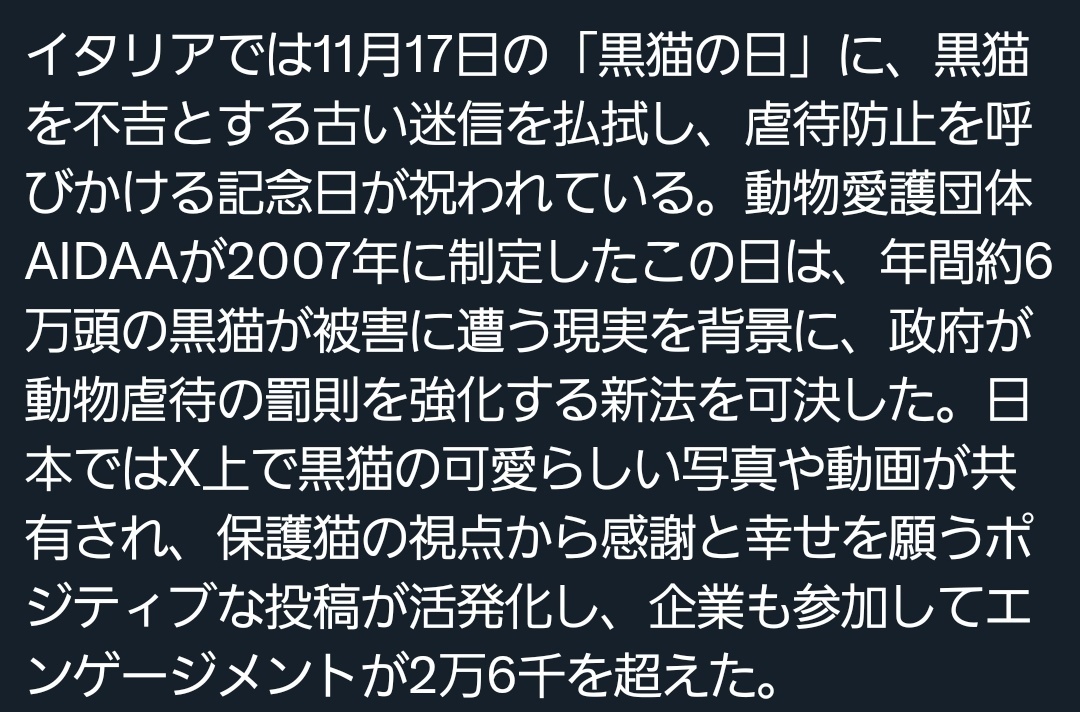 🇮🇹 イタリア 「黒猫の日」で迷信払拭と虐待防止を訴え 日本で愛情 投稿が広がる #イタリア黒猫の日 #GattoNeroDay #黒猫の日 #黒猫 #BlackCat 🐈⬛ x.com/i/trending/199… pic.x.com/CAke9z7KWh