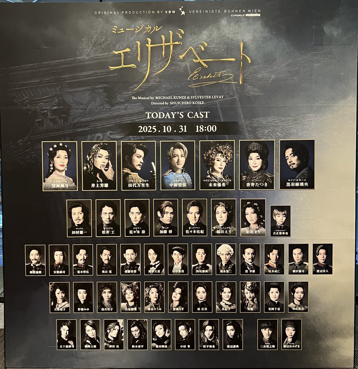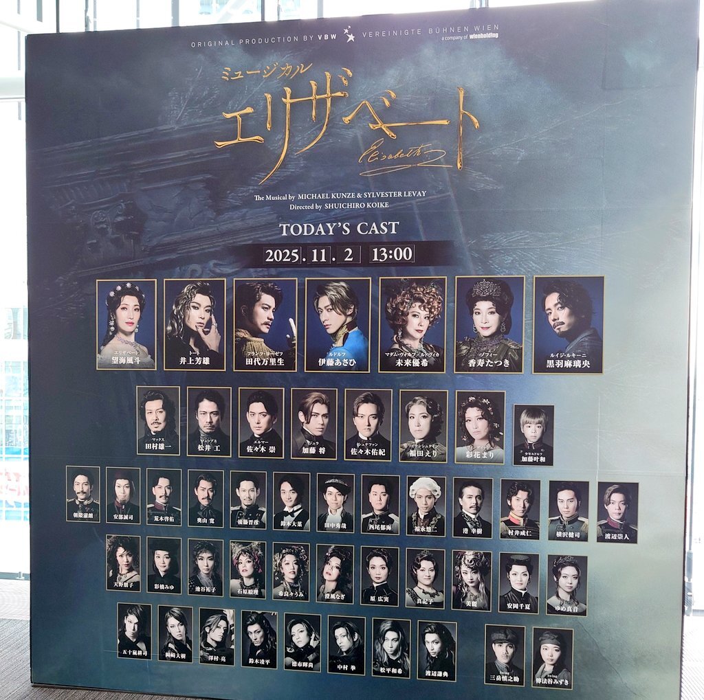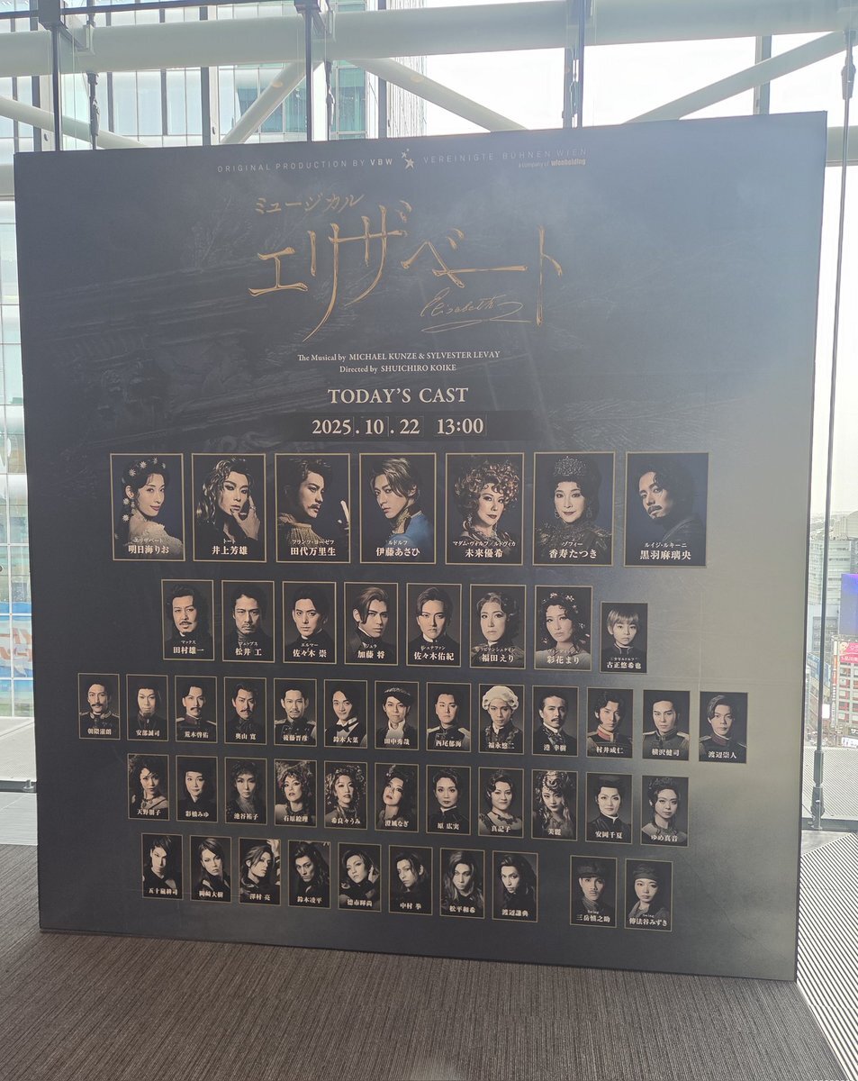 本日はこちら🪶 2025/11/2 マチネ✨ 芳雄トートの「最後のダンス」の低音の響きももちろんですが、望シシィと芳雄トートの「私が踊る時」の2人のバチバチ💥も楽しみです🪶 #エリザベート2025 #望海風斗 #井上芳雄 #田代万里生 #香寿たつき #黒羽麻璃央 #伊藤あさひ 東京の空は雲が多いです〜⛅ pic.x.com/jODZkHPaIl