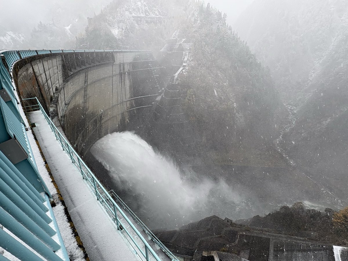 【大反響】 くろにょんだよ🐈️ 11/3の黒部ダム画像をInstagramに 投稿したら、大反響だったので、 Xにも投稿しますにゃん。 動画版お楽しみくださいにゃん! ※工事のため放流しておりますが、 観光放水は終了してます #黒部ダム #くろにょん #雪 pic.x.com/PUfI5Outxb