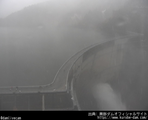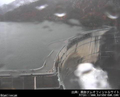 ▽防災カメラ 11/09 16:40ごろの #黒部ダム のライブ映像 天気:雨 気温:4.33℃(観測地:大町) 日の出 06:20 | 日の入 16:45 ▽黒部ダム #ライブカメラ と雨雲レーダー/富山県立山町 camera-map.com/toyama/tateyam… pic.x.com/6Tzm5LLlw6 x.com/web_camera/sta…