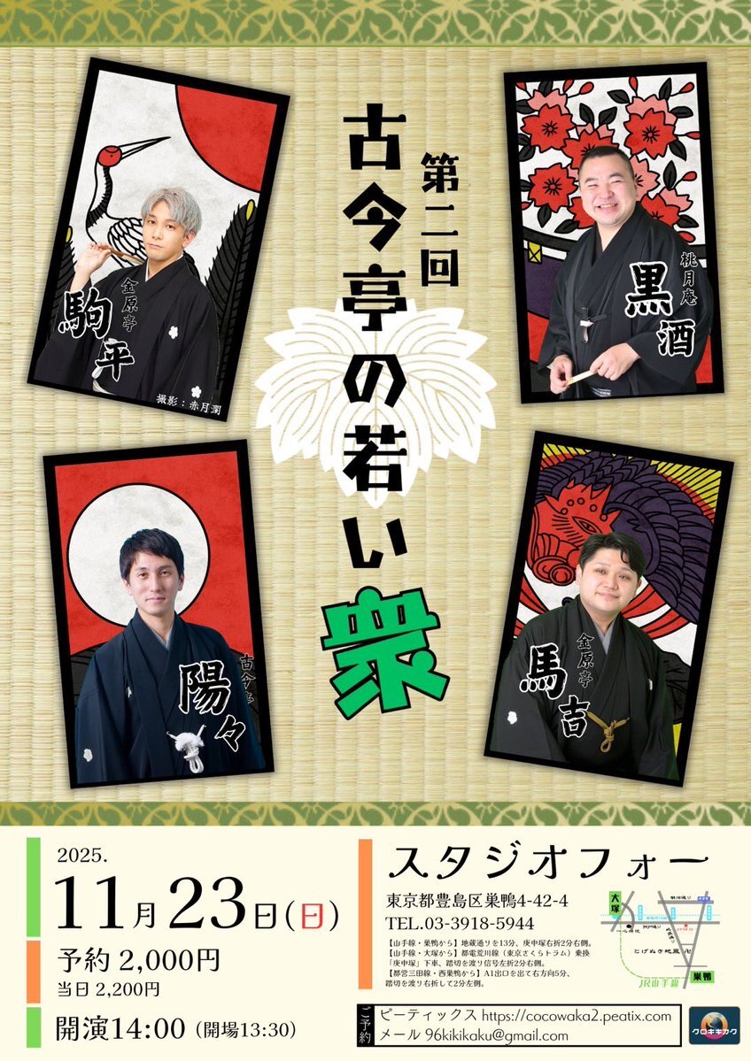 来月の #黒門町百番勝負 のお知らせ‼︎ 毎月恒例 #金原亭駒平 第17回 『黒門町百番勝負』 11月15日(土)17:30開演 会場 落語協会2階 前売 ¥2000 演目 「道具や」「幇間腹」「天災」 次回も二席根多おろし、何卒よろしくお願い申し上げます🙇 ▽ご予約・詳細はこちら▽ kingpro.co.jp/komahei/news/a… pic.x.com/zD7VXnmr77