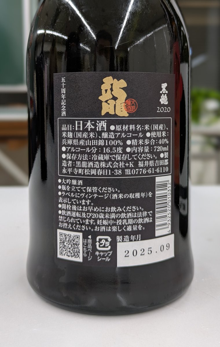 #日本酒 #黒龍酒造 #黒龍 龍 大吟醸 五十周年記念酒 (山田錦 40%) 2020BY 福井県 【香り】メロンやバナナのようなイソ系の吟醸香が豊か。香りの密度が高い。熟成香は感じない。 【味わい】すっきりしていてしっかりとした酸。アルコール感が上顎の両側を二本の線として口中に伸びる感じ。辛口。 pic.x.com/fSsa1lBxGd