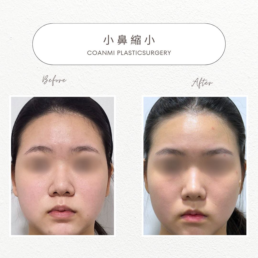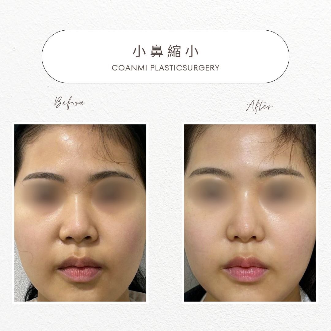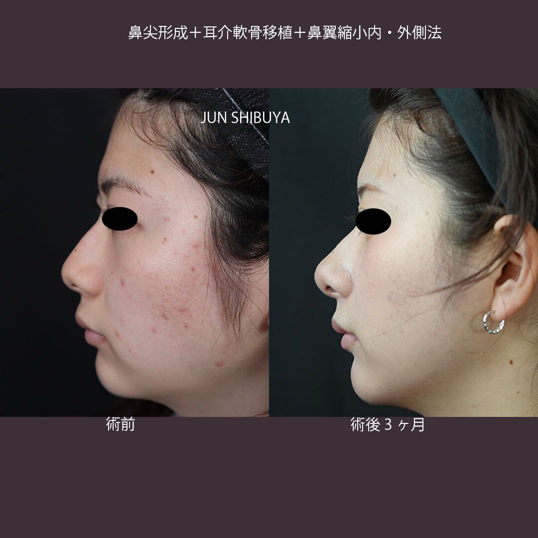鼻オペです。鼻翼縮小だけだと鼻先の丸みが強調されそうだったので、鼻尖形成と耳介軟骨移植も併用し鼻先の形状のバランス調整行いました。 鼻翼縮小は内・外側法で行なっております。小鼻の傷跡の経過も分かるよう斜め・側面像も載せてますので参考にして下さい。 #鼻尖形成 #鼻翼縮小 pic.x.com/yTHnEUxJPC