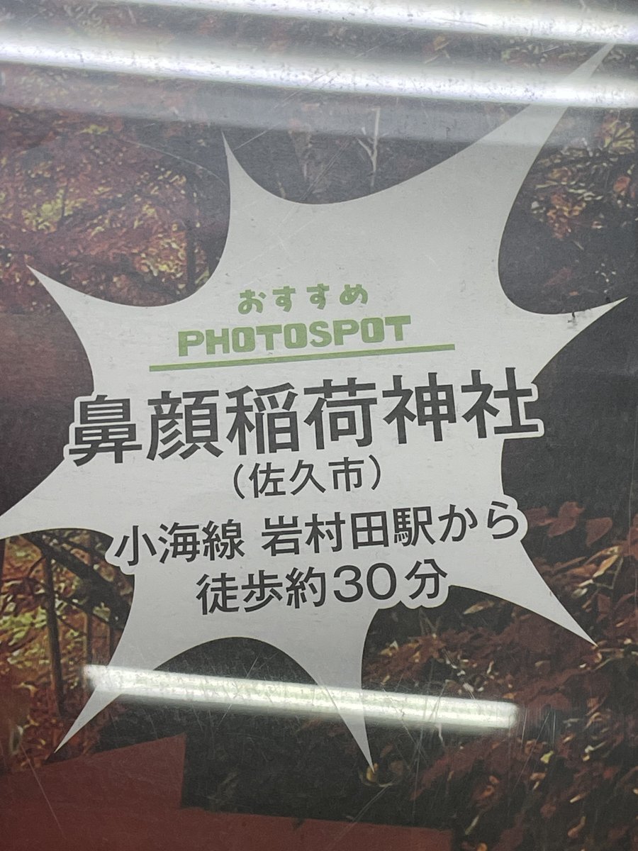何か見覚えのある場所だと思ったら・・・ JRさん、そのオススメフォトスポット2年前に撮りに行きました(笑) でも、もみじが綺麗な時に行けなかったからもう1回行こうかな。 そういえば今年まだプルーン食べてない😂 #長野で撮ろう #佐久市 #小海線 #鼻顔稲荷神社 #信州美女(@r__an_k_o ) pic.x.com/583NowMJzb