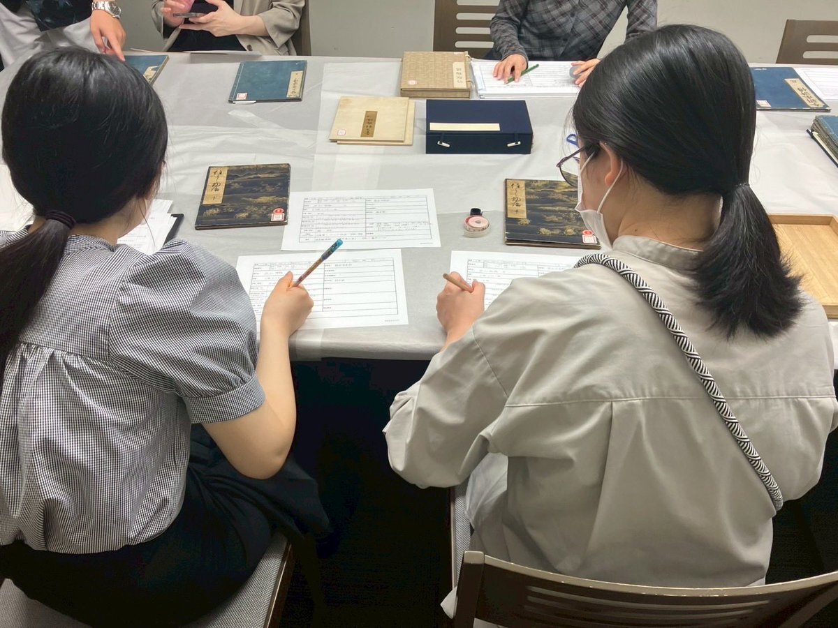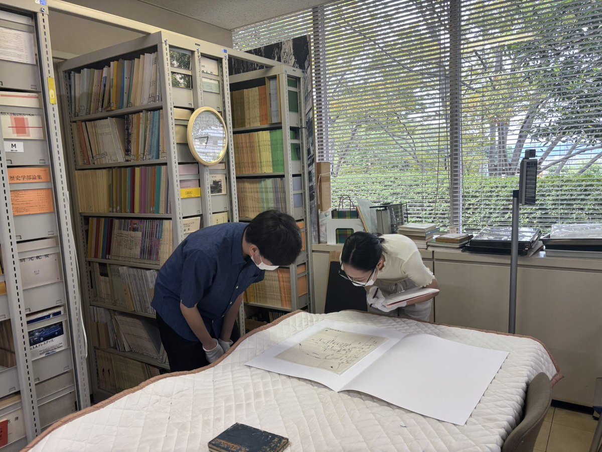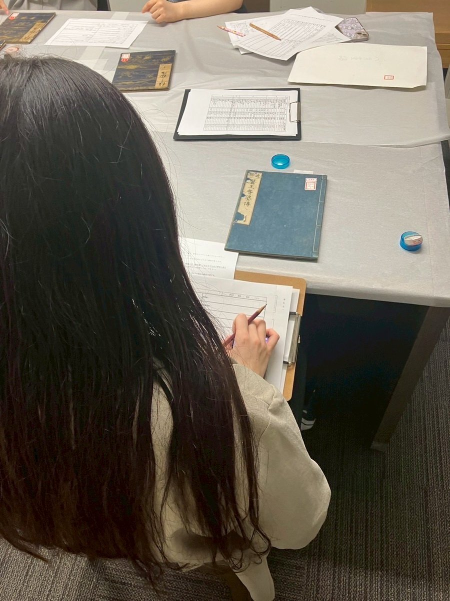 本日はB班の資料調査の様子を紹介します! B班では、龍谷大学図書館にて、書籍を中心に作品の状態確認や、図録用の写真撮影を行っています。 また、B班は、10月9日に芸艸堂様にて、版木の調査をさせていただきました! #芸艸堂 #龍大 #龍谷大学図書館 #龍大博物館実習2025 #12月展 pic.x.com/SidBD7Q59O