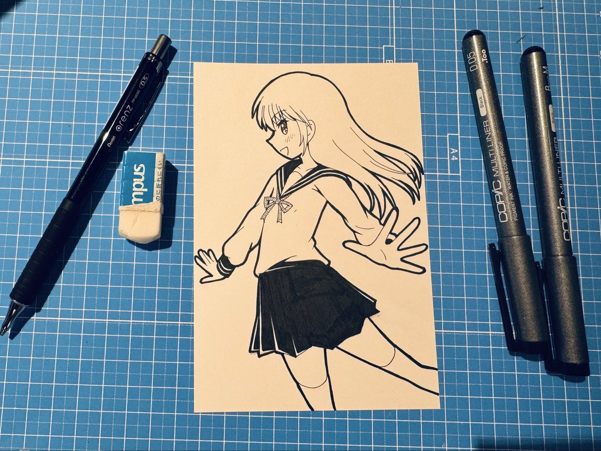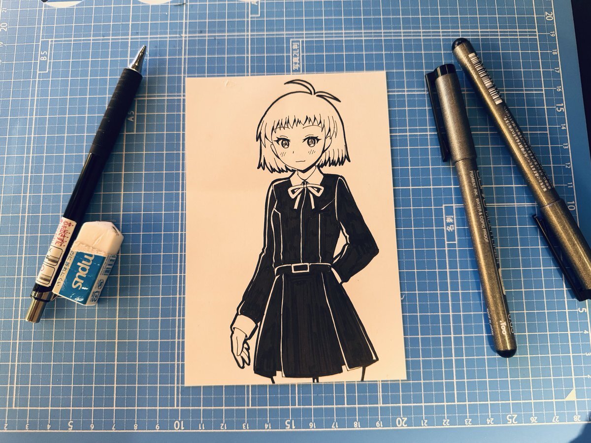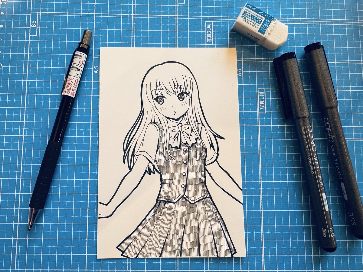 종이에 펜과 붓으로 그리고 있습니다. 紙にペンと筆で描いています。 I am drawing on paper with a pen and brush. #그림러_𝕏친소 #그림계 #animeart #artistsonX #イラスト好きな人と繋がりたい #絵描きさんと繋がりたい x.com/_lovey_dovey__…