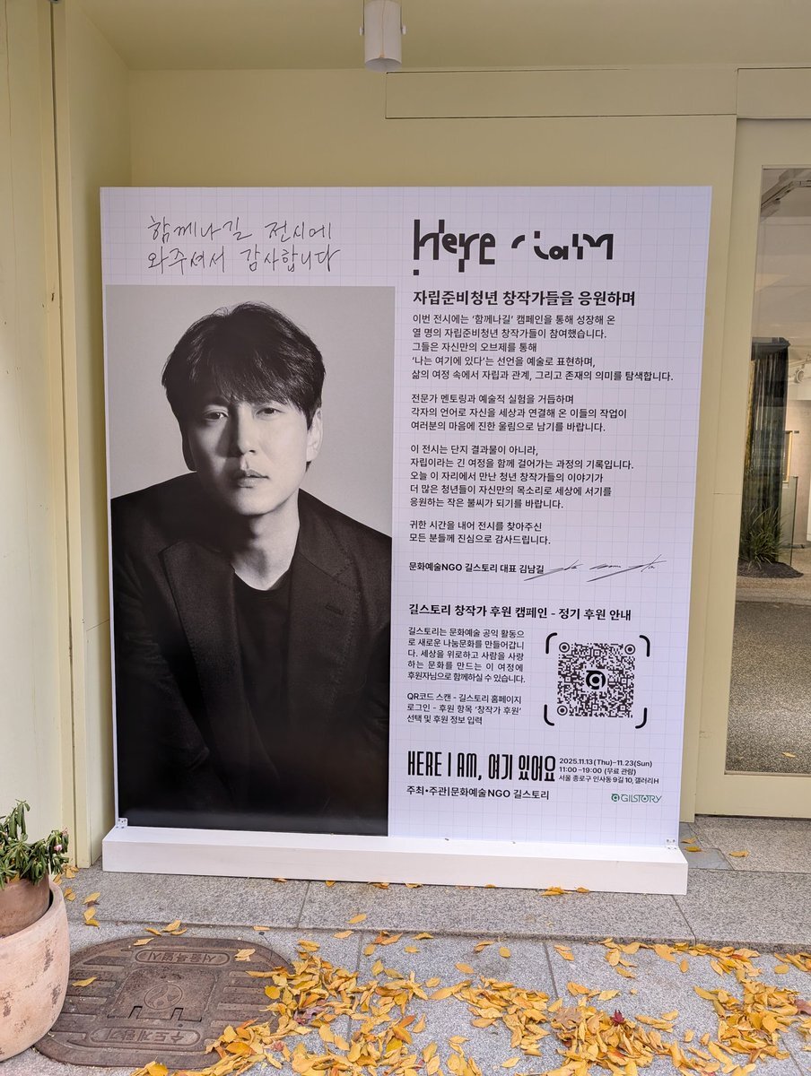 無料展覧会 <HERE I AM> '共に作り、共に完成させる体験'を直接感じてみてください。 - 展示情報 - 期間 | 2025年11月13日(木) - 11月23日(日) 場所 | ソウル鍾路区仁寺洞9街10、ギャラリーH 時間 | 午前11時 - 午後7時 入場 | 無料展示 #キム・ナムギル #김남길 #KIMNAMGIL x.com/team_gilstory/…