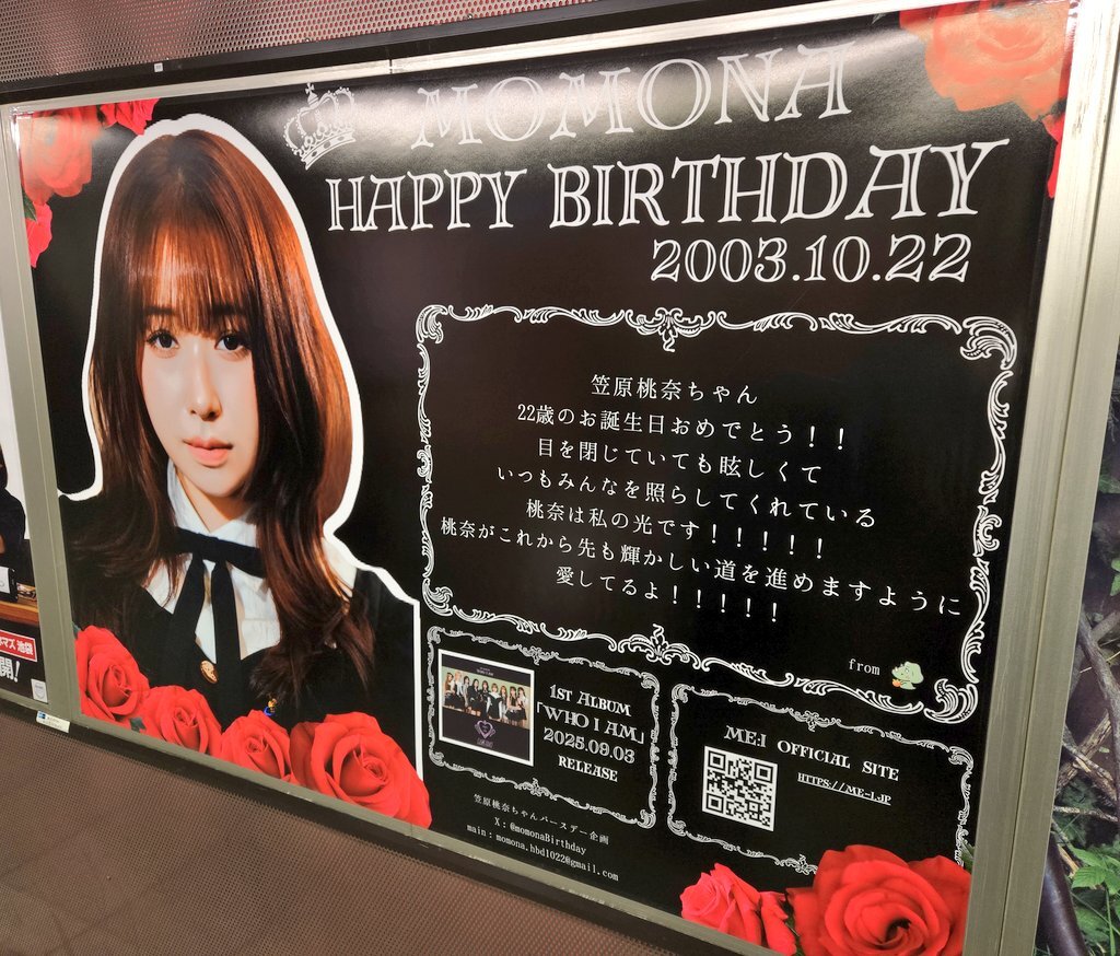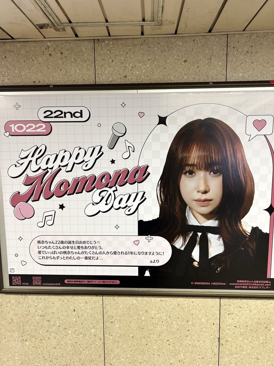 ʜᴀᴘᴘʏᴍᴏᴍᴏɴᴀᴅᴀʏ🎂✨ #ME_I #笠原桃奈 ちゃんのお誕生日を記念して、 本日より応援広告を掲出しております🍑🤍 ⟡🗓️10/20(月)~10/26(日) ⟡📍東京メトロ新宿駅 ⟡🏷️#Mymoonlight_22ndBD #달빛처럼_변하지_않는_사랑을 是非お立ち寄りください🪄 #HAPPYMOMONADAY @official__ME_I_