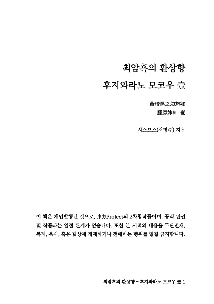 최암흑의 환상향 후지와라노 모코우 壹(最暗黑之幻想郷 藤原妹紅 壹) 재쇄본 샘플입니다. (1/4) #동방프로젝트 #후지와라노_모코우 #최암흑의_환상향 pic.x.com/6kGvyT76Bw