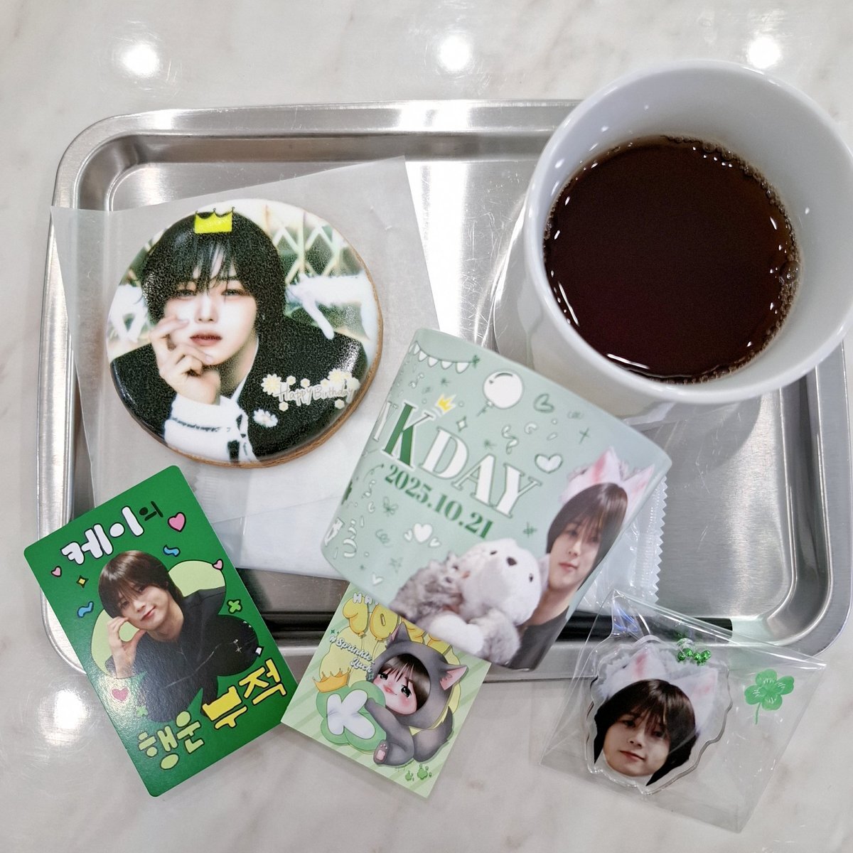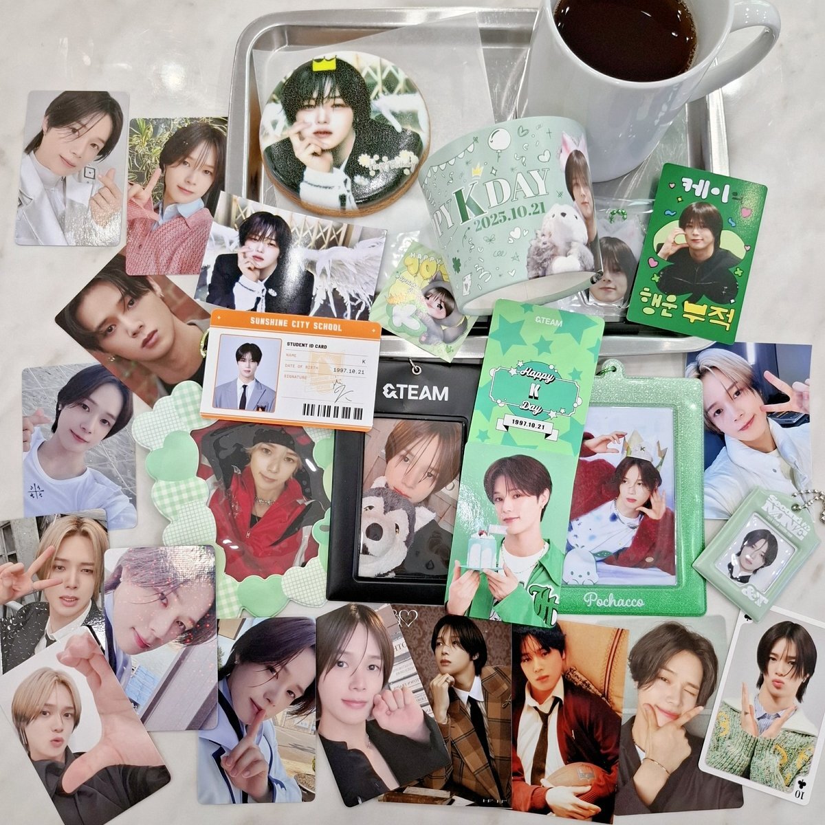 10/21 K형 생일 축하해🎂 けいくんセンカペ巡り②@@chu_cafe 님 けいくんの好きな緑色に溢れた💚 プリクッキーはお気に入りすぎなうちゅくしぃ天使のけいくん😇 (定例の机散らかしガチ勢) #andTEAM #andTEAM_K #HAPPY_K_DAY #k #Kくん #앤팀 #케이 #루네 #kペン #luné pic.x.com/rJWwwjWuQK