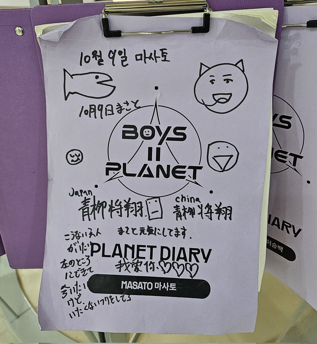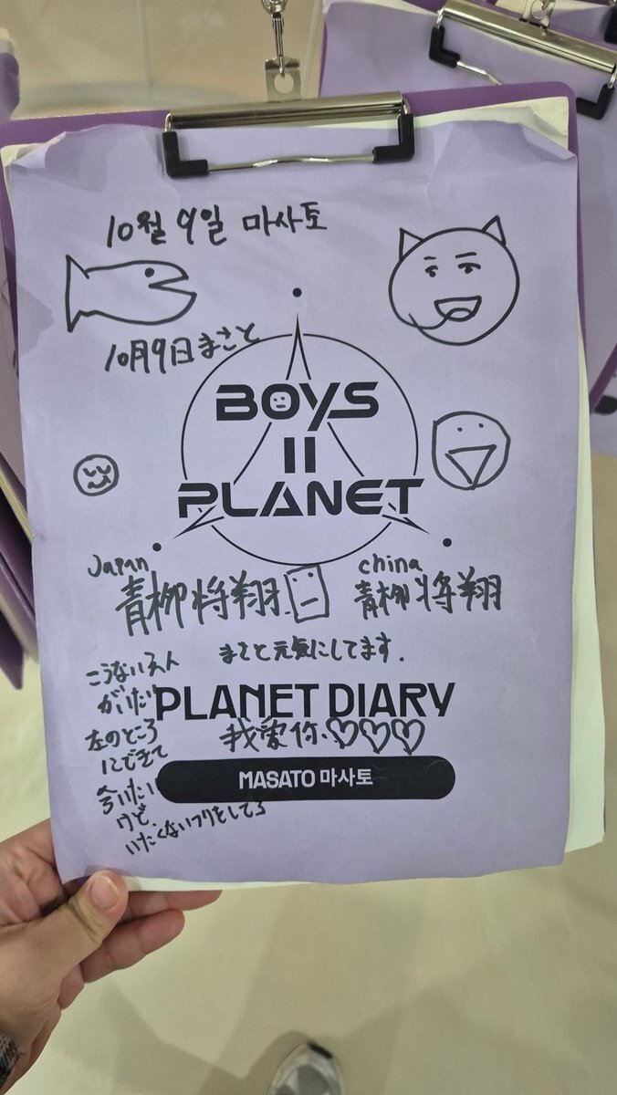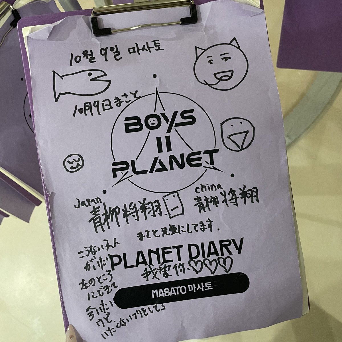 マサトくんが今日日記の表紙に残したメッセージらしいんだけど、、 そこに"Japan 青柳将翔" "China 青柳将翔"って書いてあって、この間のリベンジ果たしてる😹😹 どこまでもおもしろ男で大好き #마사토 #マサト #MASATO pic.x.com/4JTpZJlWgt