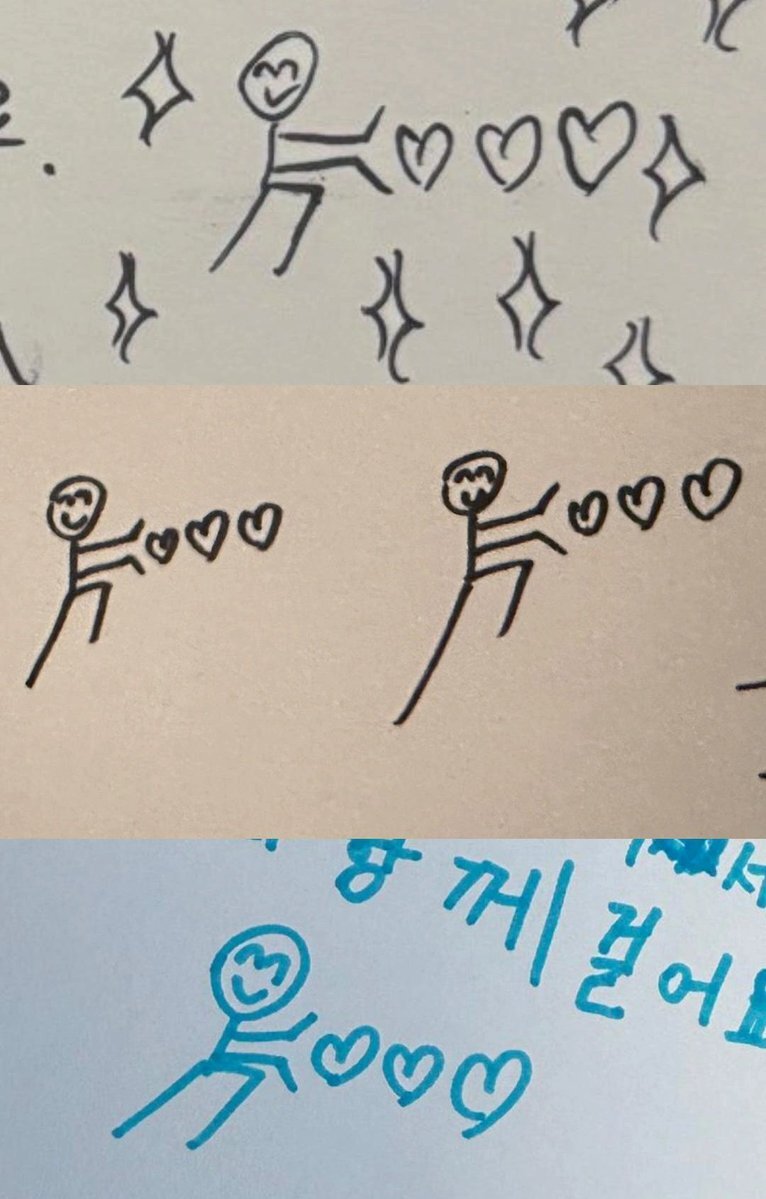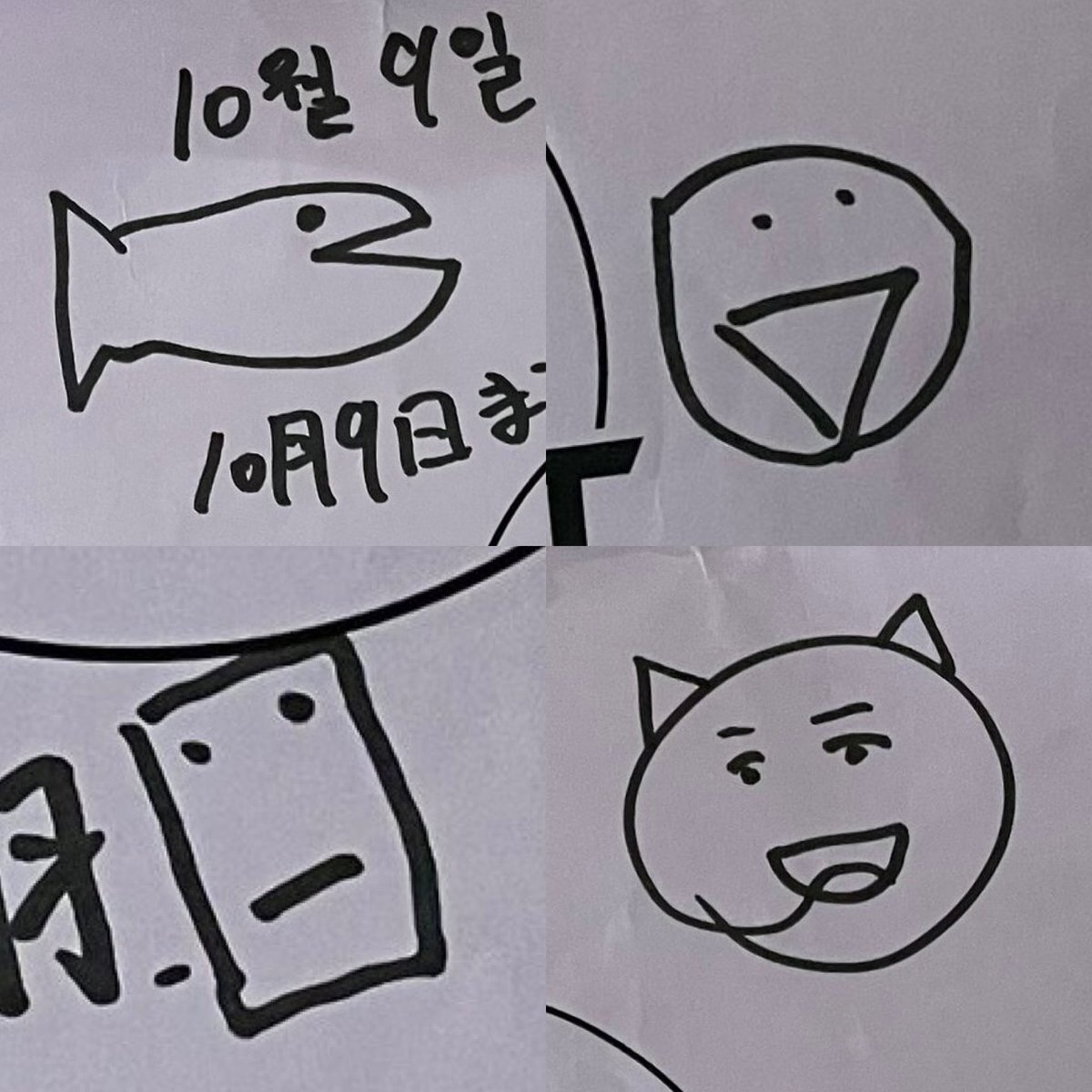 落書きが小学生みたいでかわいいなーガキだなーって思ってたら左下に意味わからんTMI書いてて声出た マサトさん、ペンを変えま●すもそうだけど毎回絶対書かなくていいこと書くからほんとにおもしろい #マサト #마사토 pic.x.com/y7vLGIGHI9