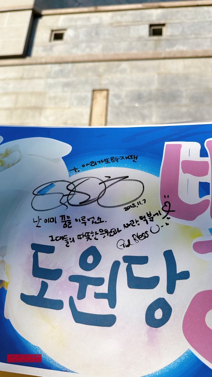 251107 #ARIGATOBGJAPAN 映画 #夢遊桃源図 撮影現場サポート☕️ ボゴムさんのサイン✍️⑤⑥ 和訳) ⑤ 余はすでに夢を成し遂げた そなたらの温かき応援と 愛のおかげでな ⑥ 맛있당 おいしい😋 #パク・ボゴム #박보검 #ParkBoGum #朴寶劍 #몽유도원도 #안평대군 #CanvasOfBlood #WeareBGer