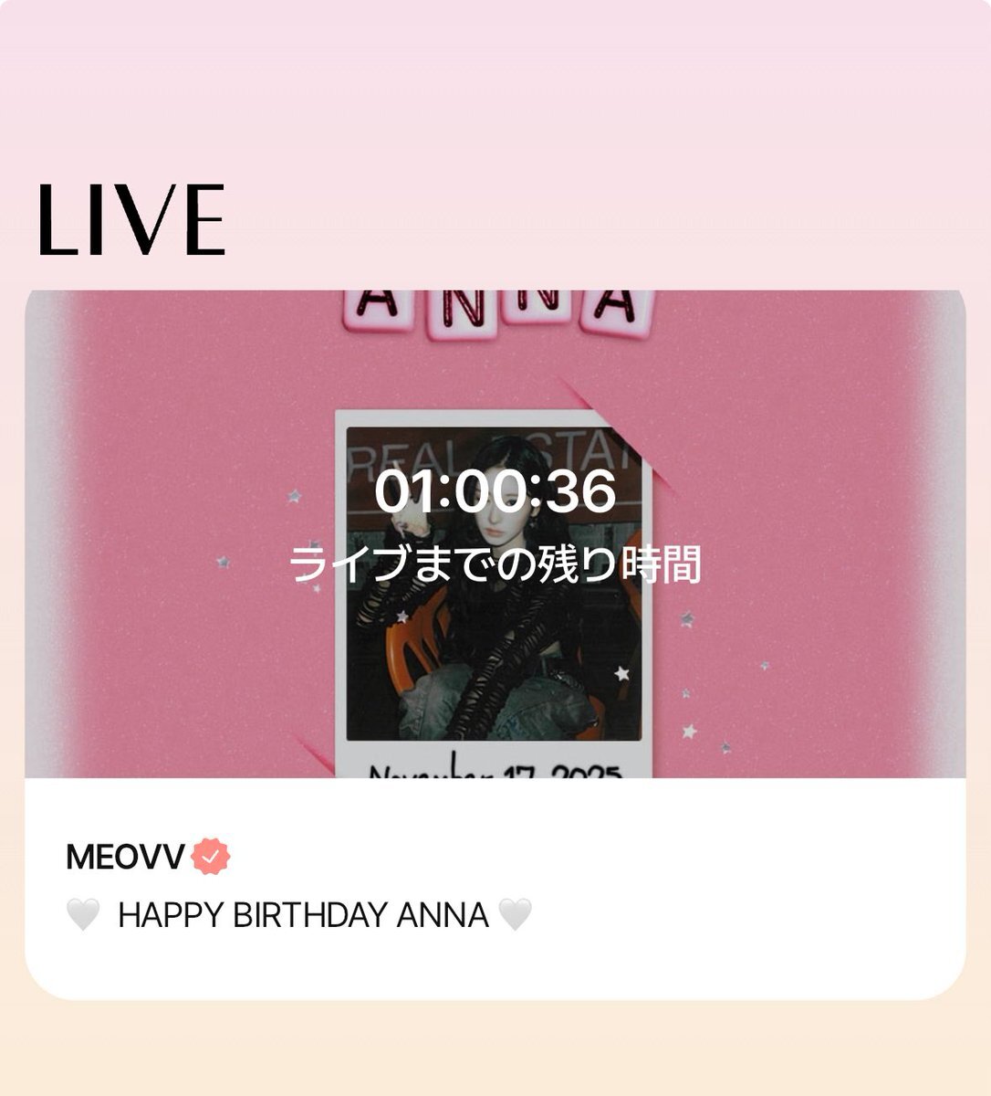 📢birthday liveお知らせきた⸜( ˶'ᵕ'˶)⸝ #MEOVV #미야오 #ANNA #안나 #Chapter20withANNA #안나짱_탄신일_멧차축하해 #世界がアンナに恋する日 pic.x.com/83fU67gBS5