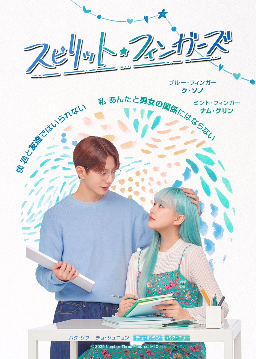 [📢] #スピリット・フィンガーズ 💙ソノ&グリン💚 カップルポスター公開!! ・片想い歴7年 一途男子 ・一生友達でいたい 幼馴染  ⇒ もどかしい2人の関係はどうなる?😳 📱10/29(水)16時~ 日韓同時・毎週水曜日更新 🔗lemino.docomo.ne.jp/ft/0000148/ #チェ・ボミン #パク・ユナ #최보민 #박유나 pic.x.com/QujHPjwSeY