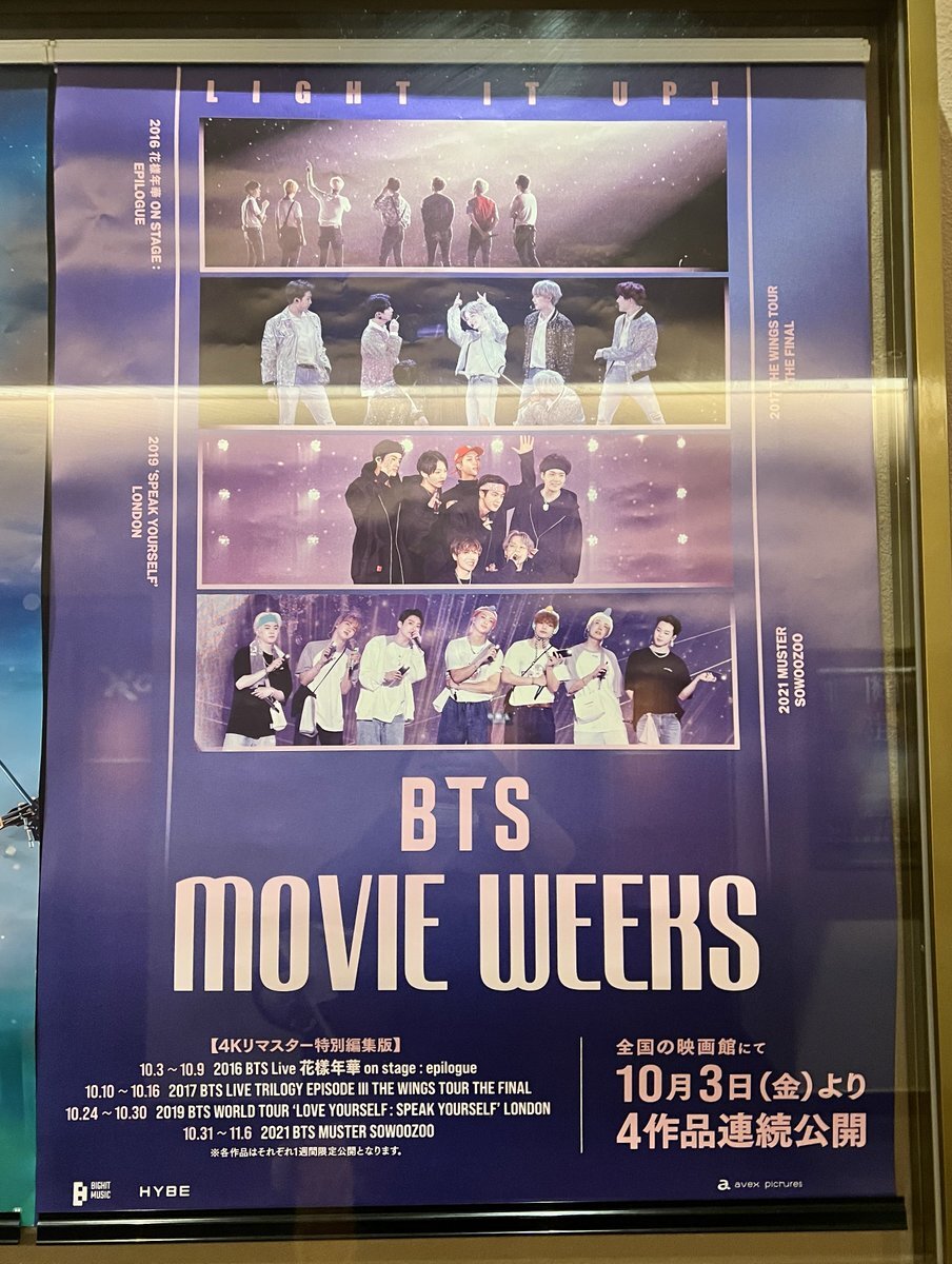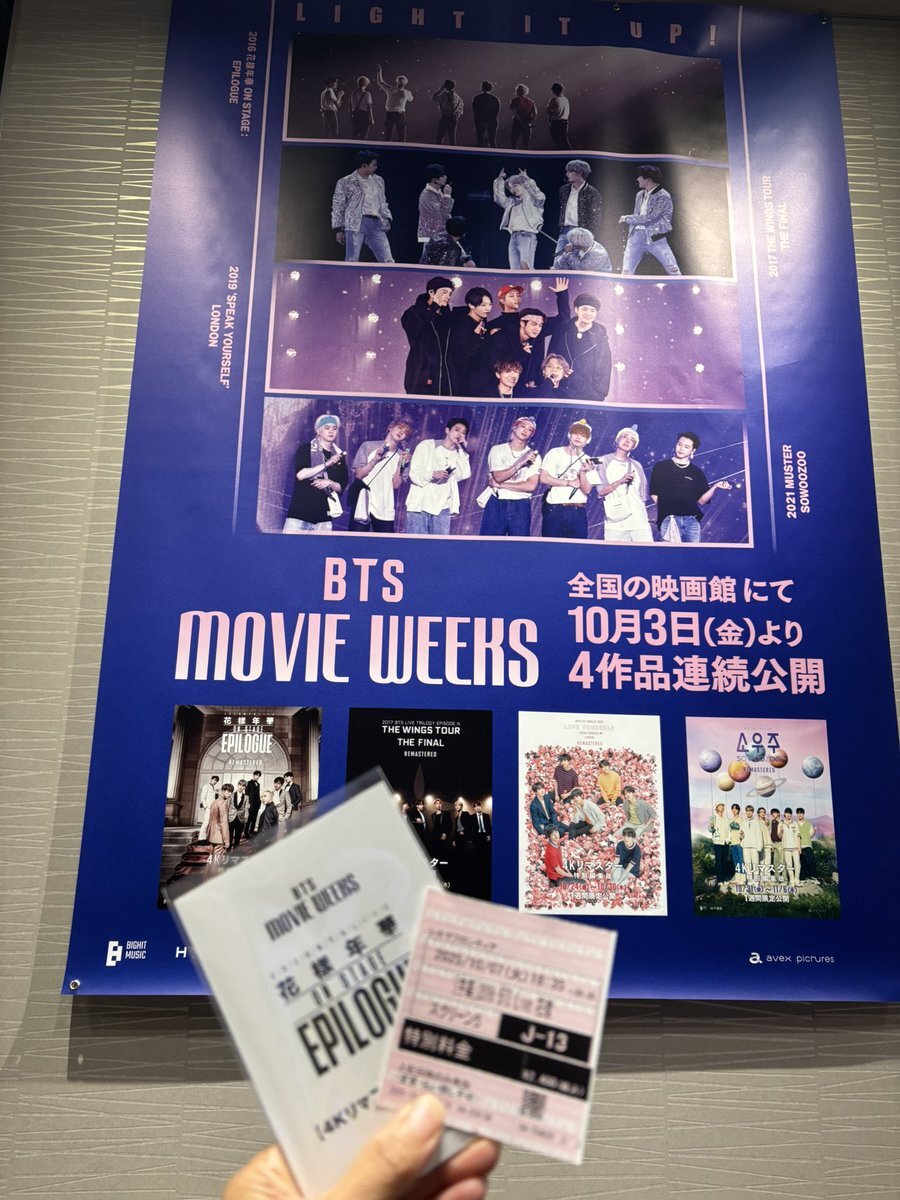 家族で映画行ってきた〜💜! HYBEのロゴが出るくらいまで余裕こいてナチョス食べてたんだけど、結局1曲目から泣いてたし最後はゴン泣きでした🤦🏻♀️笑 月並みな言葉だけどやっぱライブ行きたくなる❗️❗️ ライブしてるバンタンに会いたいぞ〜❗️❗️❗️♡♡ #BTSMOVIEWEEKS #BTS上映見たよ #BTS #방탄소년단 pic.x.com/UzUU8gAIjH
