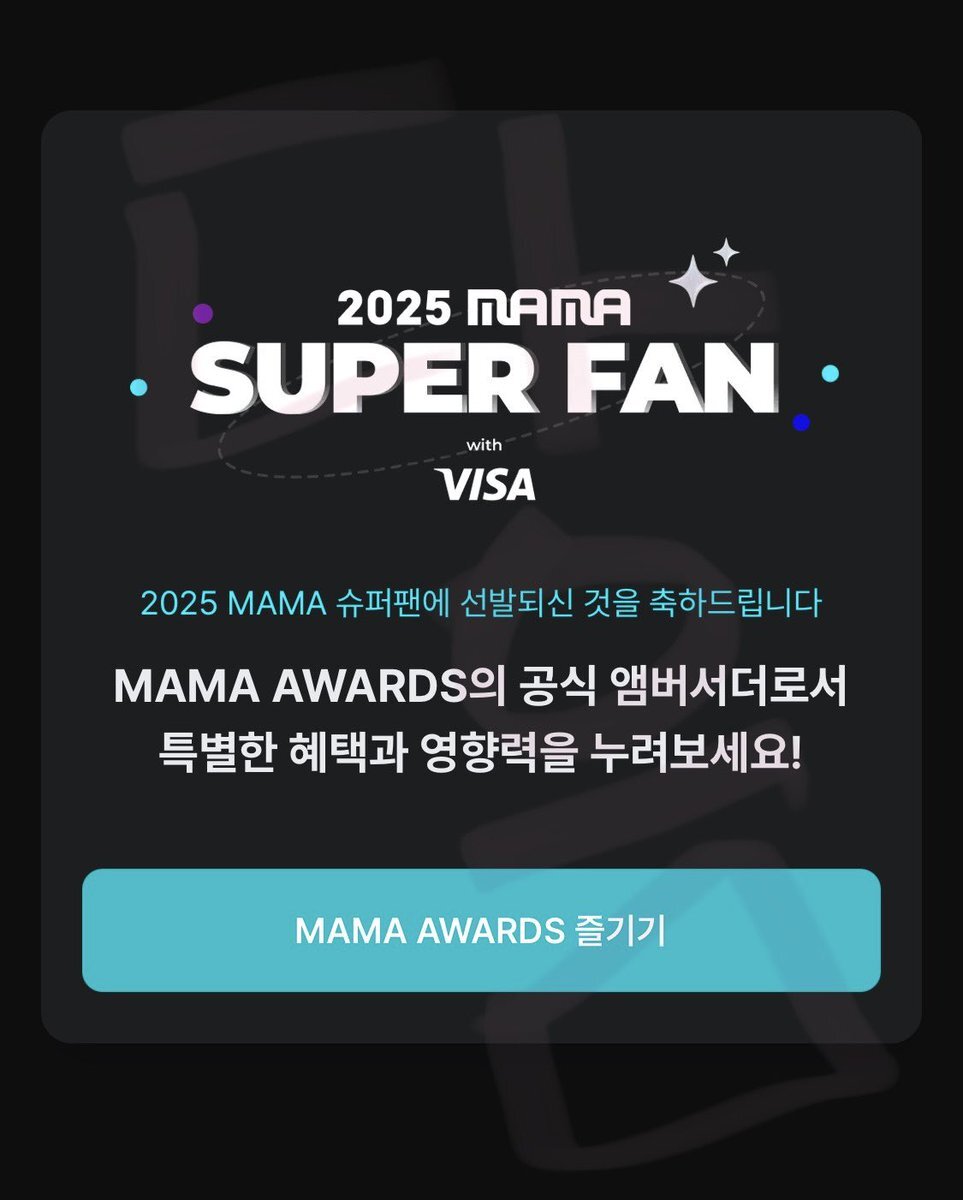 저 슈퍼팬 선발됐어요~!! 링크 한번만 눌러주세요ㅜ!! スーパー ファンに選抜されました〜! リンクを一度だけ押してください!! share.mnetplus.world/2025-mama?refe… #슈퍼팬 #아홉 #mama #MAMA슈퍼팬 pic.x.com/rJttiXTMsL