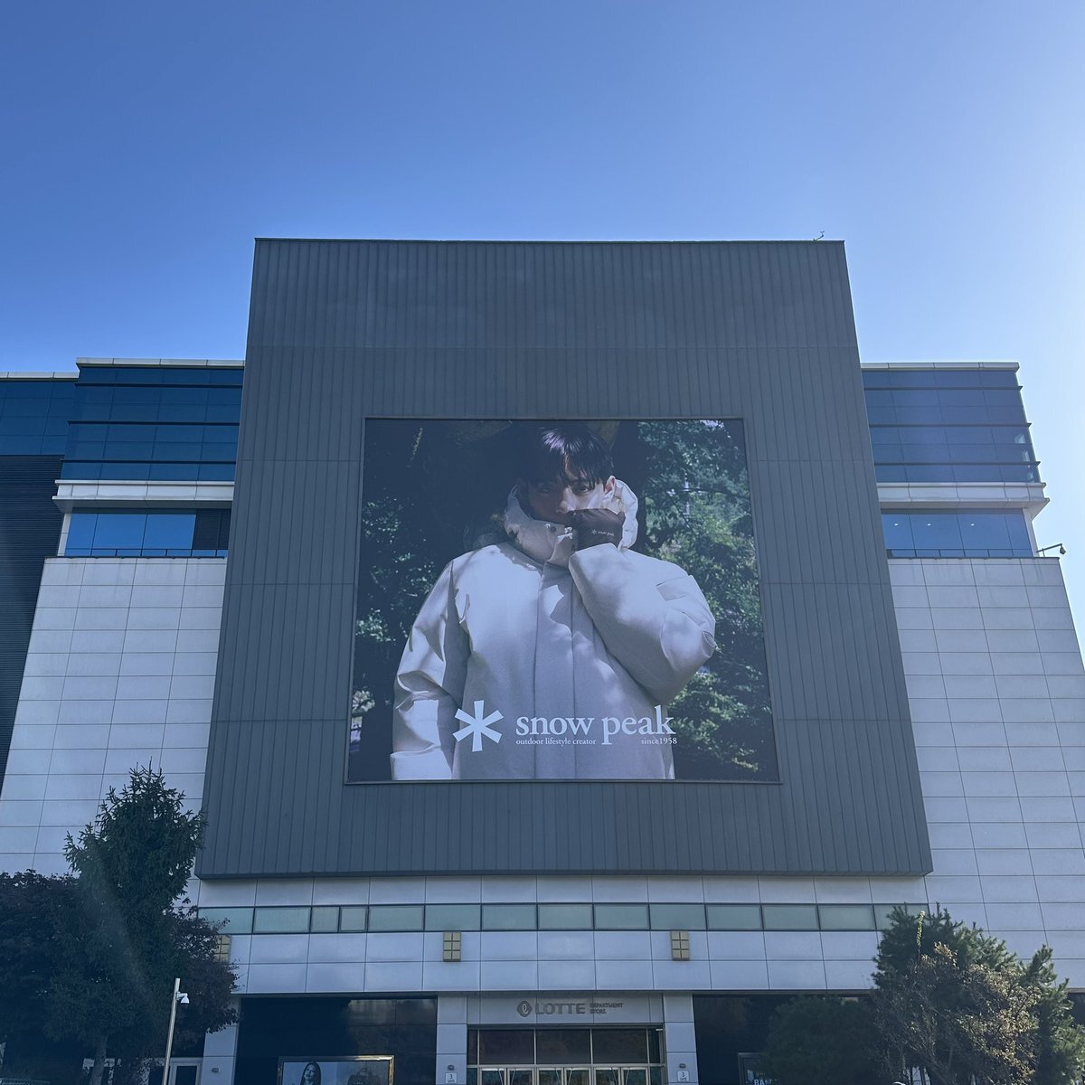 ロッテ百貨店仁川のエントランスと建屋横のスノピテテ広告 仁川ターミナル駅から地上へ出ると、このテテが出迎えてくれて幸せでした メインビジュアルが11/1〜変わったようです (RPのビジュアルは10/31迄) #V #뷔 #snowpeak #스노우피크 #스노우피크어패럴 #25FW #스노우피크뷔 pic.x.com/b4vQx0wvkt x.com/snowpeakoutdoo…