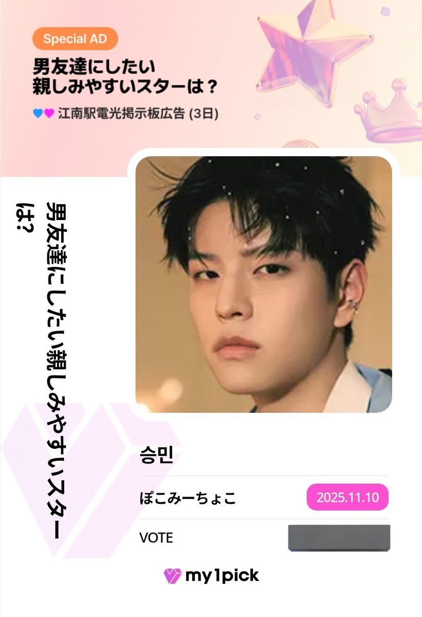 スキズから久しぶりのエントリー🫶💕[MY1PICK] theme 男友達にしたい親しみやすいスターは? 2025-11-10 ~ 2025-11-16 ぽこみーちょこさん승민 投票完了! マイワンピックで一緒に応援しに行く! fsn-app.my1pick.com/app/link/theme… #마이원픽 #MY1PICK #theme #승민 pic.x.com/u4ICRtiFOv