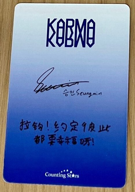 Counting Stars Chinese card back “拉钩!约定彼此都要幸福呀!” “Pinky swear! Promise to stay happy together!” #SEUNGMIN #승민 #スンミン #金昇玟 #StrayKids pic.x.com/UqBDuxVFA3