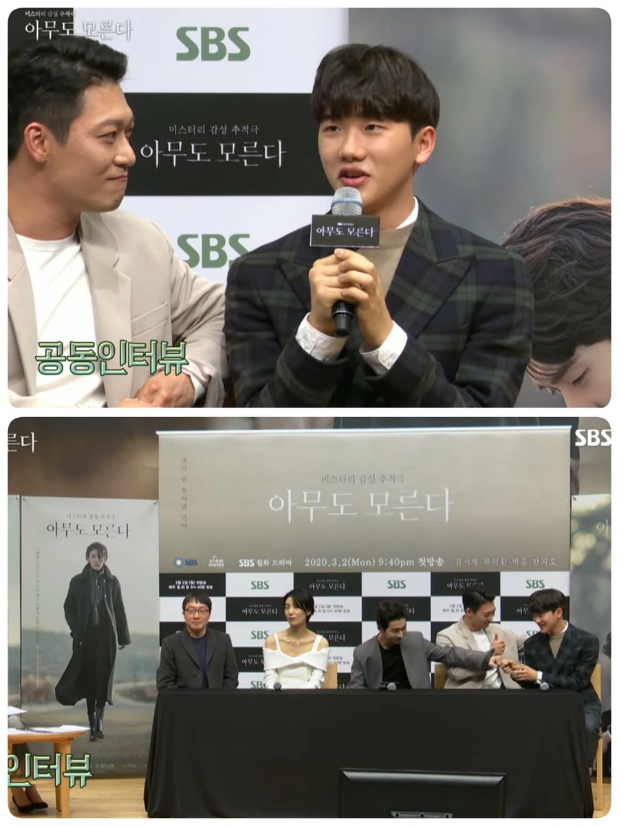 とても和やかな制作発表会。 皆が信頼する監督。皆の先輩&姉、キムソヒョンさん✨そして、緊張しながらこの場に臨むアンジホさんを見守る兄2人(リュドックァンさん&パクフンさん) #誰も知らない #아무도모른다 youtube.com/live/Gc2eXwg_Q…
