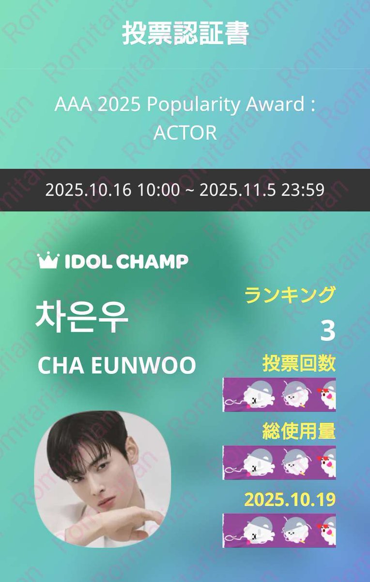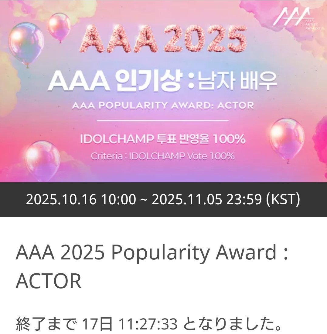 【AAA 2025 】ACTOR 10/19㈰️🩵ウヌ️🩵に🗳 11/5 ㈬23:59迄です IDOLCHAMP 아이돌챔프 "차은우" 투표 완료 promo-web.idolchamp.com/app_proxy.html… #CHAEUNWOO #차은우 #車銀優 #チャウヌ #ASTRO #아스트로 #AROHA #아로하 pic.x.com/0SELGt0DOK