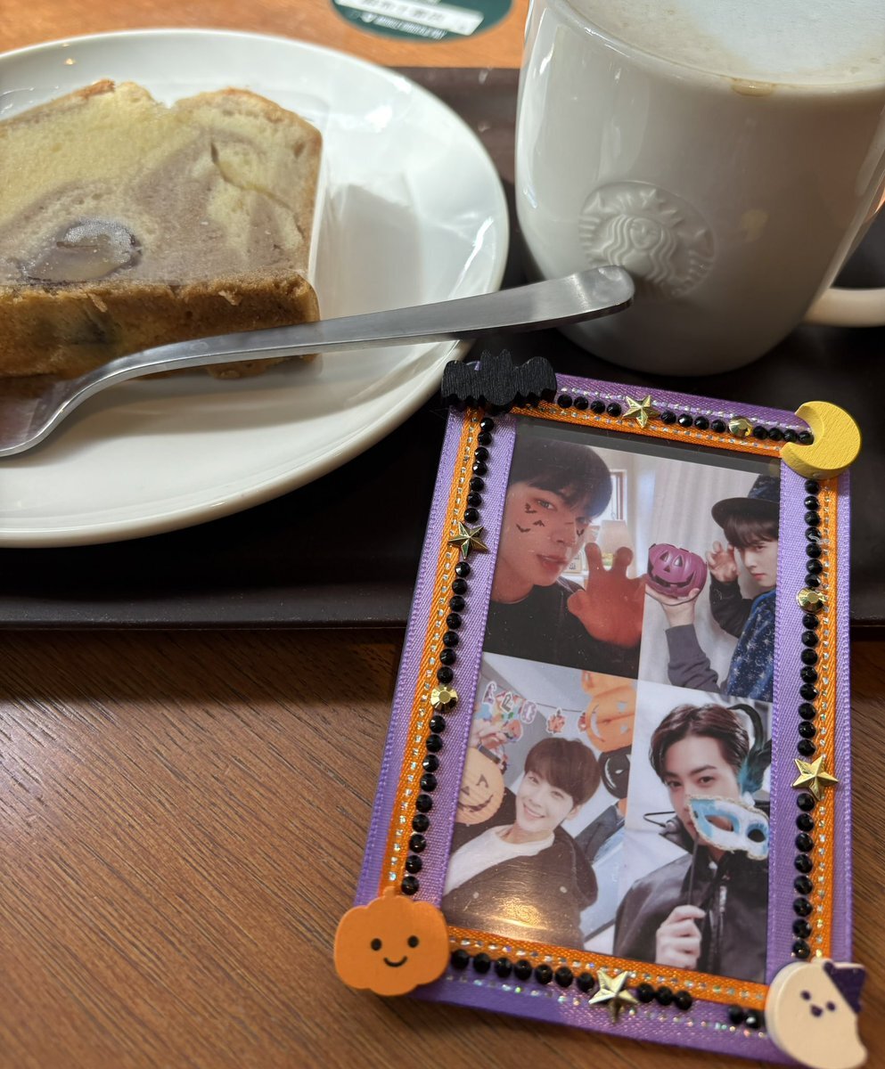 お蕎麦を食べた後はスタバの マロンパウンドケーキ🌰でゆっくり コーヒータイム☕️ お伴はまろちゃん@maropu0330 の ウヌのハロウィントレカ🩵ケース🎃👻 とっても可愛いの🩷 まろちゃんありがとう🫶🏻