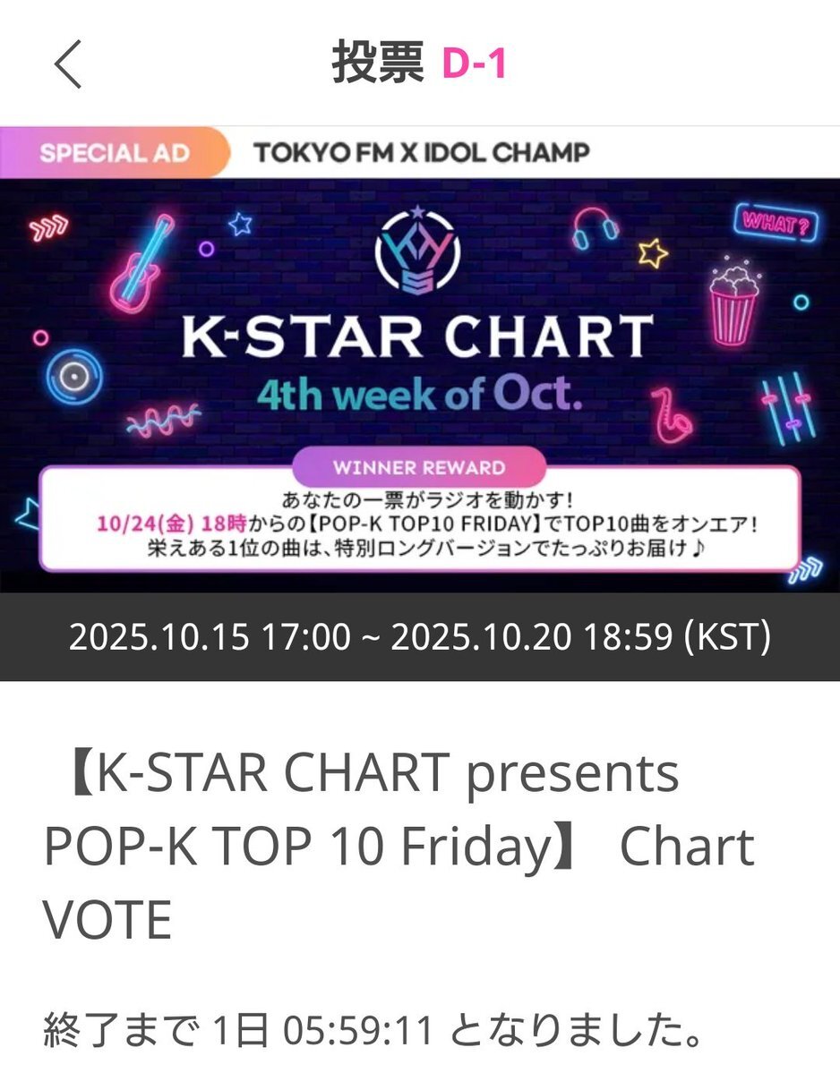 【K-STAR CHART presents POP-K TOP 10 Friday】 Chart VOTE 10/19㈰🧡ZOONIZINI💚に🗳 締切は明日10/20🈷18:59迄 IDOLCHAMP 아이돌챔프 "Some Things Never Change" 투표 완료 promo-web.idolchamp.com/app_proxy.html… #주니지니 #ZOONIZINI #아스트로 #ASTRO #아로하 #AROHA #DICE #Some_Things_Never_Change pic.x.com/rwTYMIKQOw