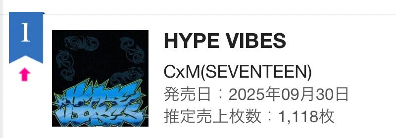 📈オリコン ランキング 2025.10.16付 デイリーCDアルバムランキング CxM ‘𝙃𝙔𝙋𝙀 𝙑𝙄𝘽𝙀𝙎' 1,118枚 デイリー1位 おめでとうございます🎉 🔗 oricon.co.jp/rank/ja/d/2025… #CxM #에스쿱스X민규 #HYPE_VIBES #543_Prettywoman @pledis_17 @pledis_17jp pic.x.com/7iNE4ja0ie